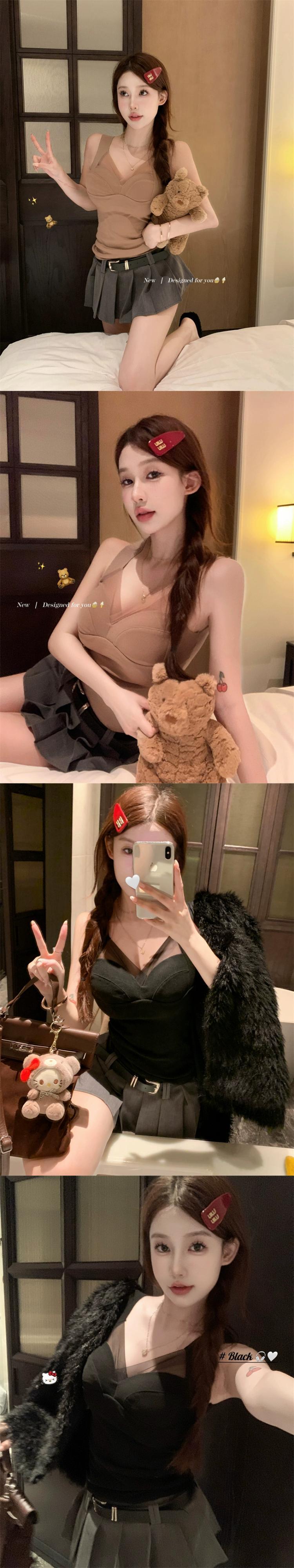 胸パッド付き純粋な欲望のスプライシングベスト女性 2024 年春の新しいスタイルとベルベットの痩身と多目的インナーサスペンダートップ スプリング 春物 0921919213593105