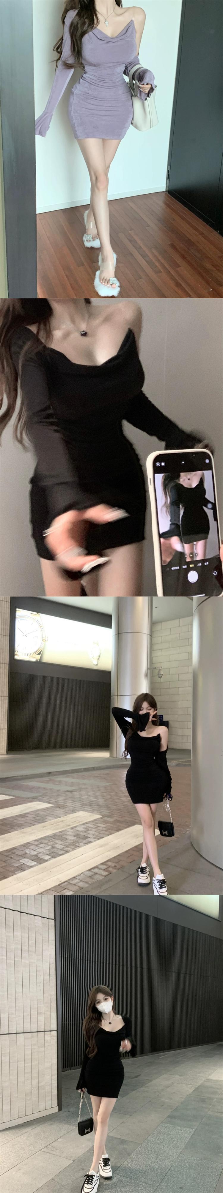 純粋な欲望ホットガールスイング襟サスペンダードレス春 2024 セクシーなウエスト痩身スリムヒップカバーショートスカート スプリング 春物 0921997383255857