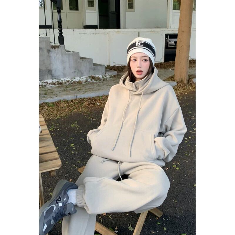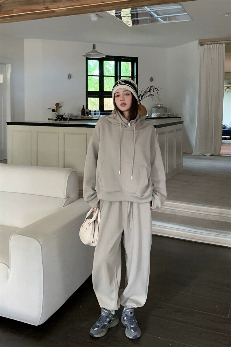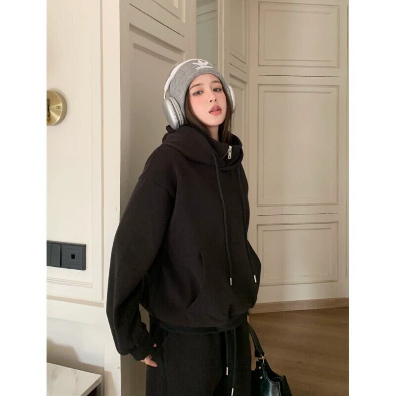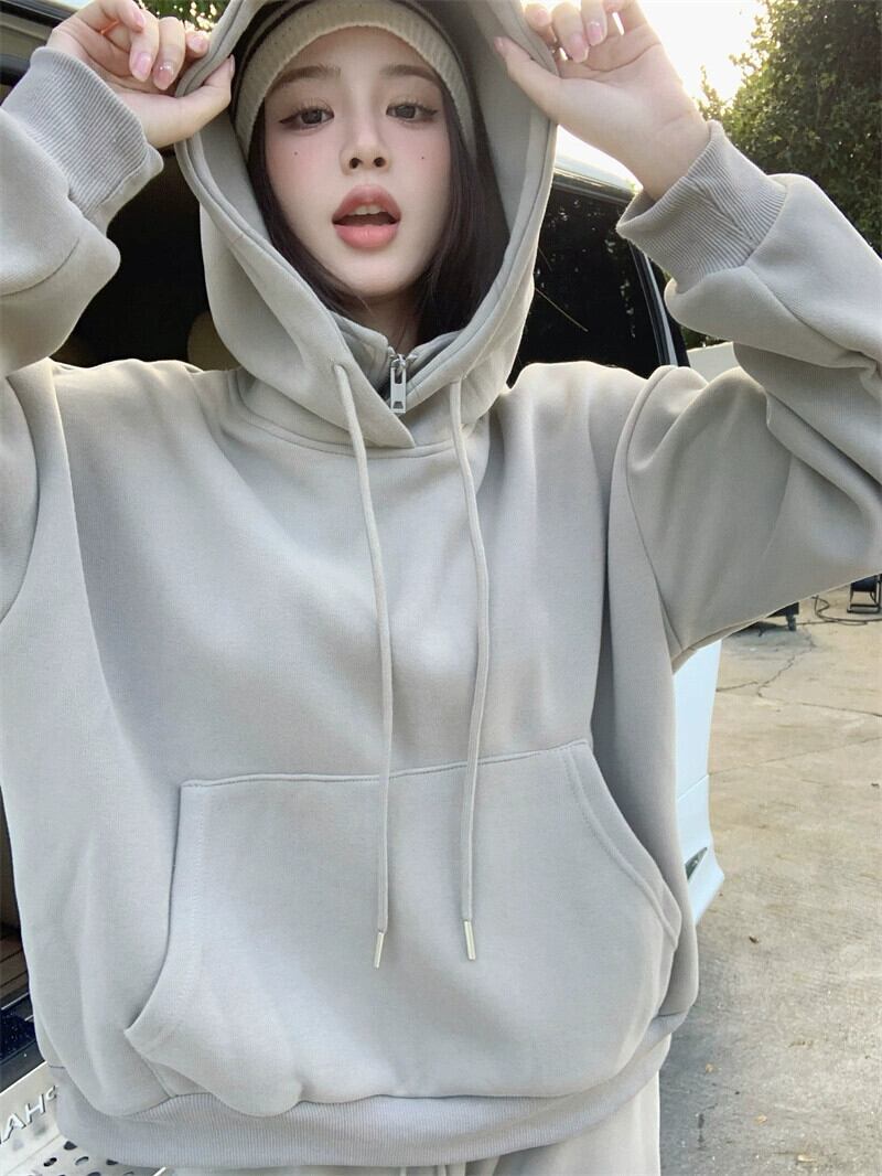 無地怠惰なスタイルのフード付きベルベットスウェットシャツの女性の冬 2024 新しい緩い痩身多目的長袖プルオーバートップ ロング ウィンター 冬物 ソリッドカラー 0921969269268000