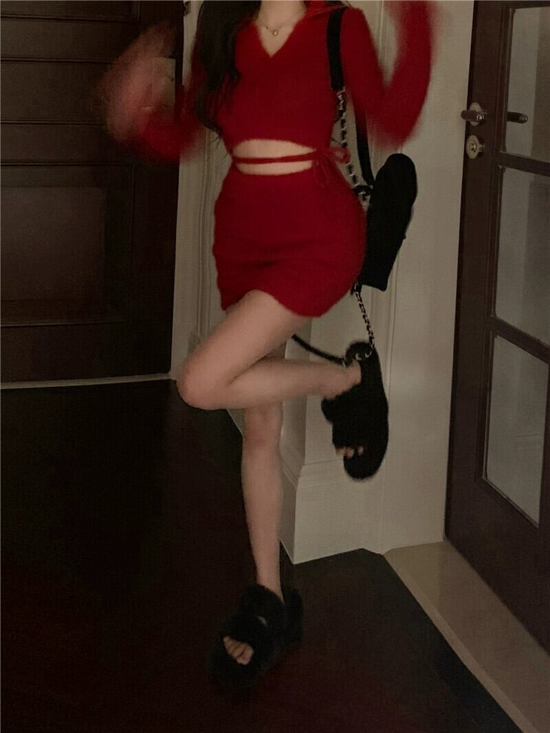 ソフトでワックス状の純粋な欲望スタイルの女性の 2024 年冬新しいイミテーションミンクファースリムフィットショートトップとスカートの 2 点セット ウィンター 冬物 ピュア 0921971415539544