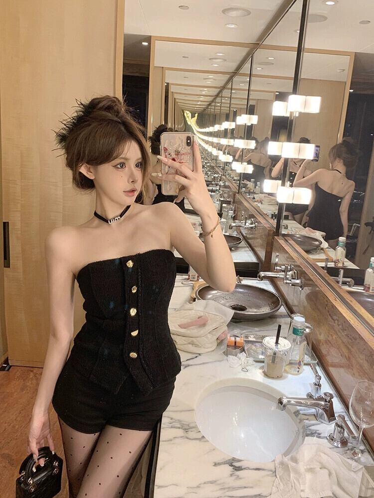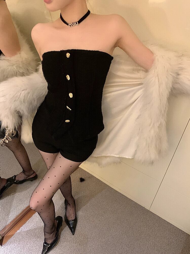 ブラック ラム ウール チューブ トップ サーマル トップ レディース 2024 春の新しいスタイルのショート スリム フィット ストラップレス チェスト ラップ ベスト スプリング 春物 0921985201110648