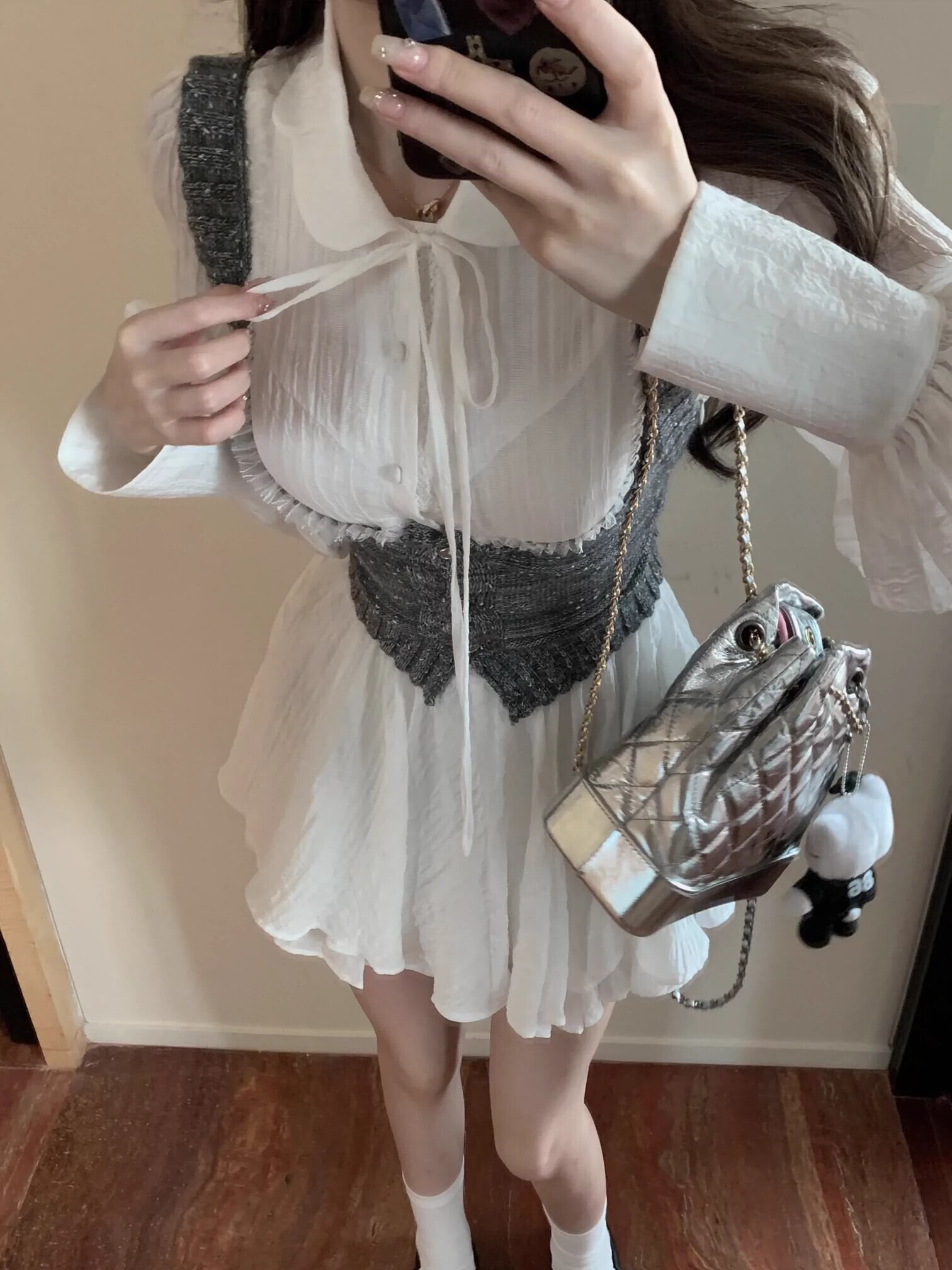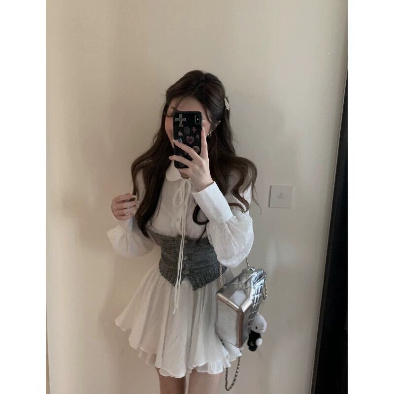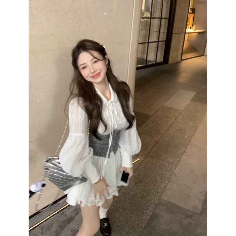 フランスのハイエンドの気質長袖ドレスの女性の冬 2024 新しいランタンスリーブウエスト痩身 A ラインショートスカート ロング ウィンター 冬物 Aライン 092192403902057