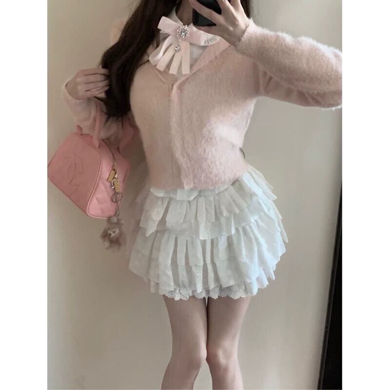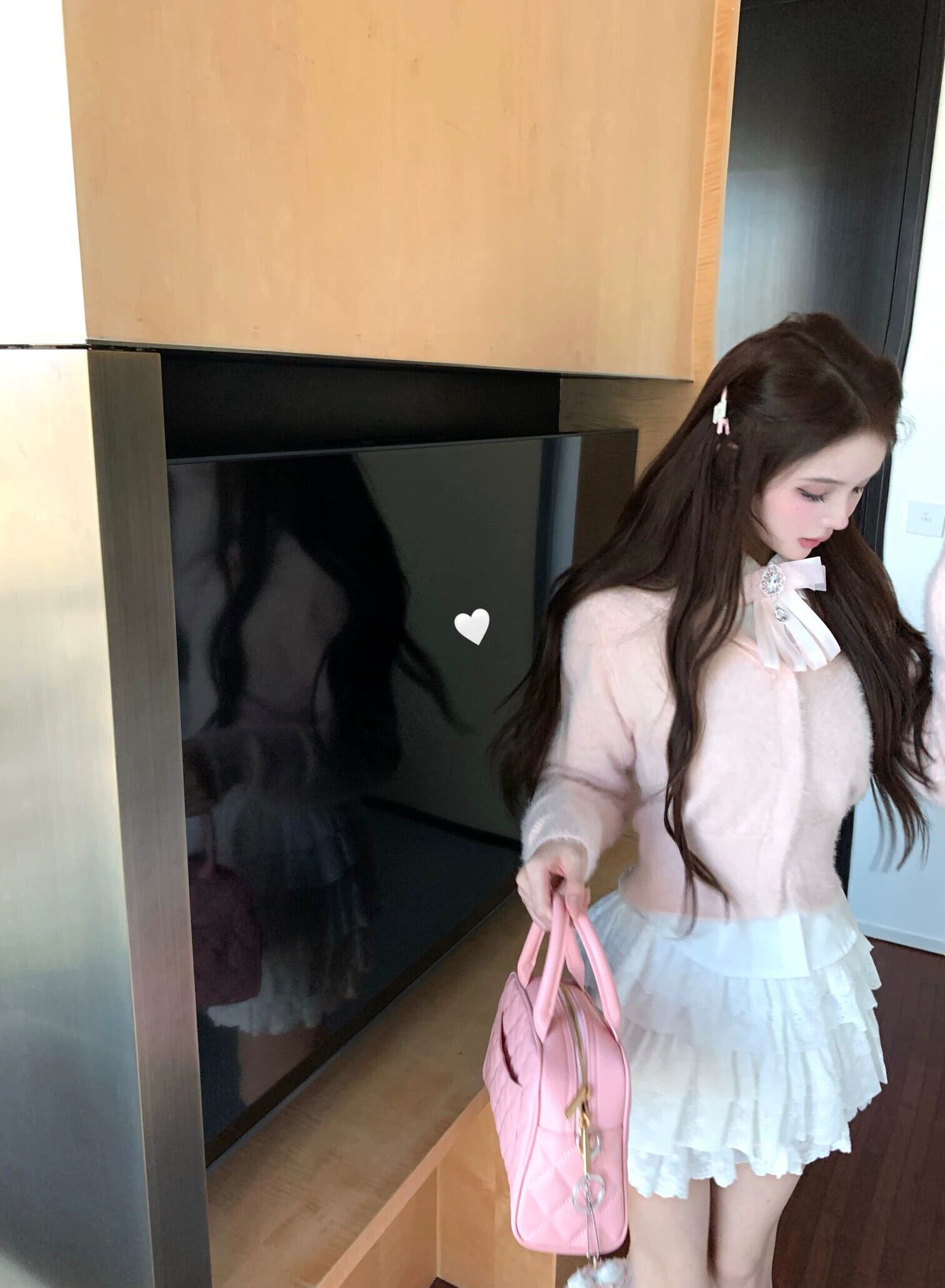 純粋な欲望ピンクラウンドネック長袖セーター女性春 2024 新しいスタイル多目的ショートスリムスリムトップトレンディな ロング スプリング 春物 Oネック 0921910738332034
