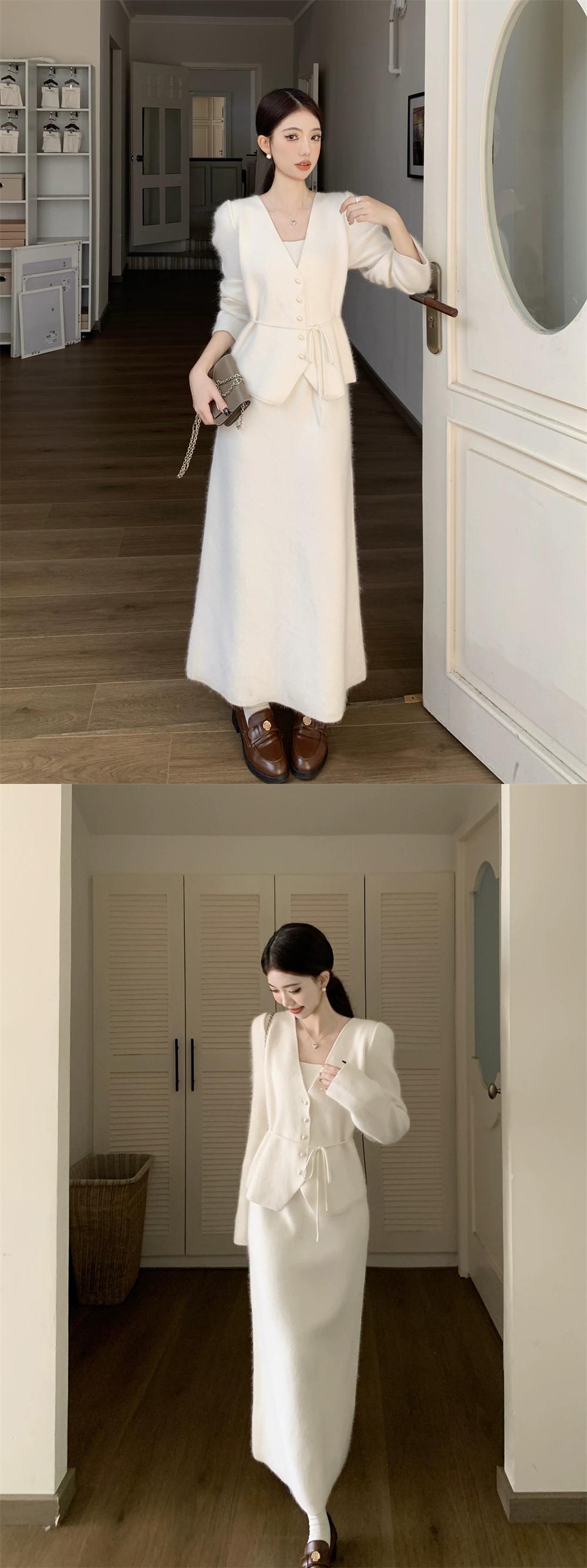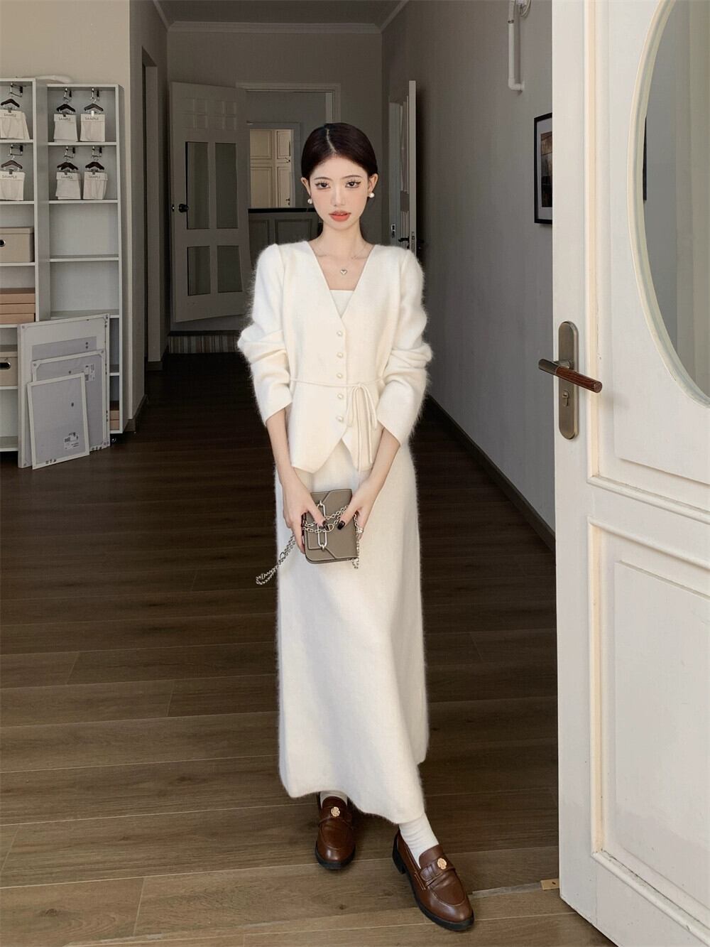 スタイル優しいスタイルファッションスーツ女性 2024 春の新長袖ニットカーディガン痩身スカート 2 点セット ロング スプリング 春物 0921996159024916
