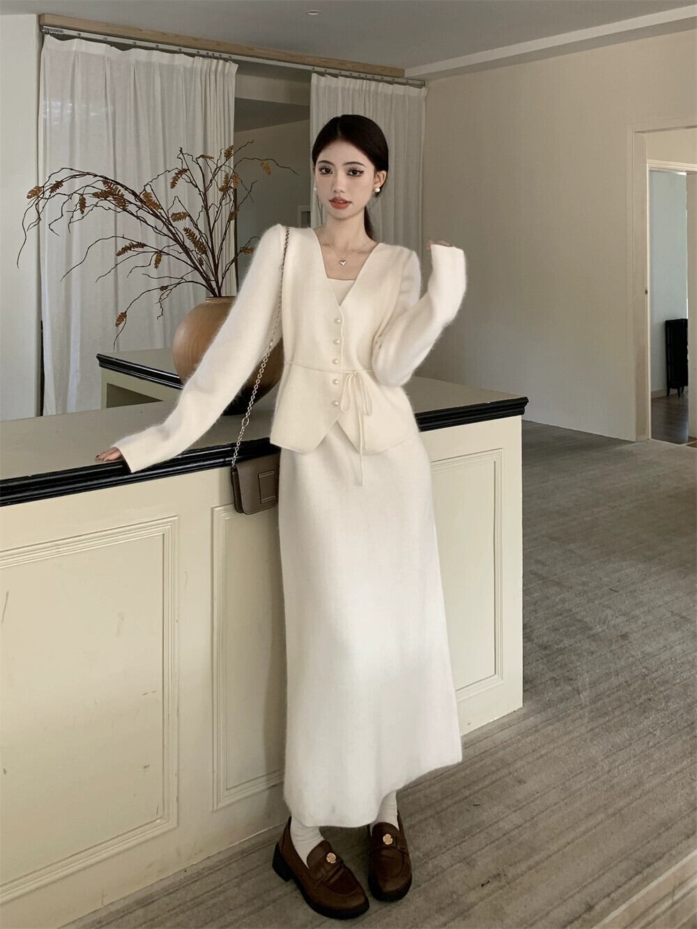 スタイル優しいスタイルファッションスーツ女性 2024 春の新長袖ニットカーディガン痩身スカート 2 点セット ロング スプリング 春物 0921996159024916