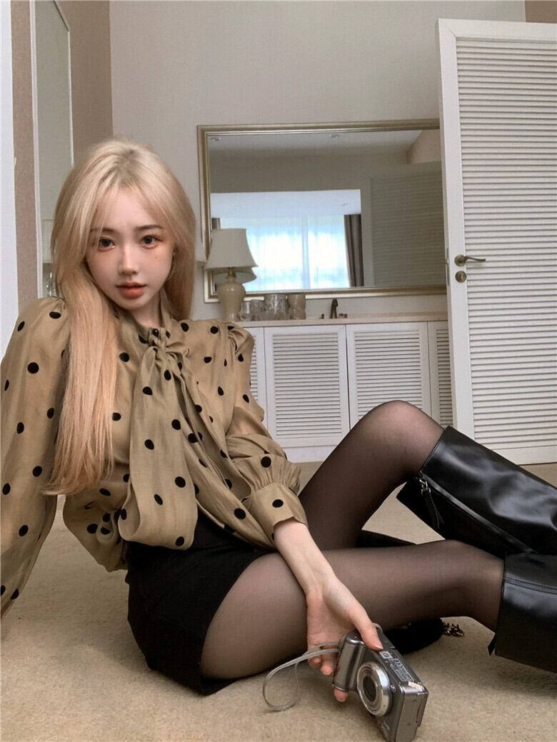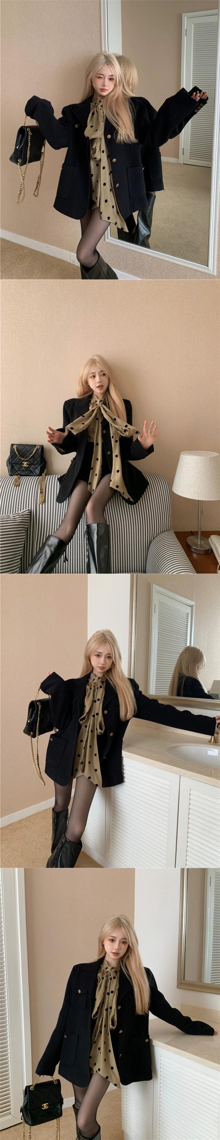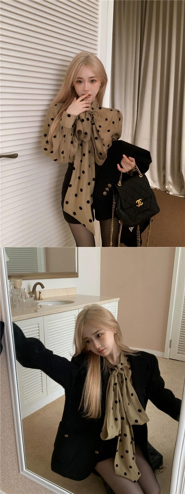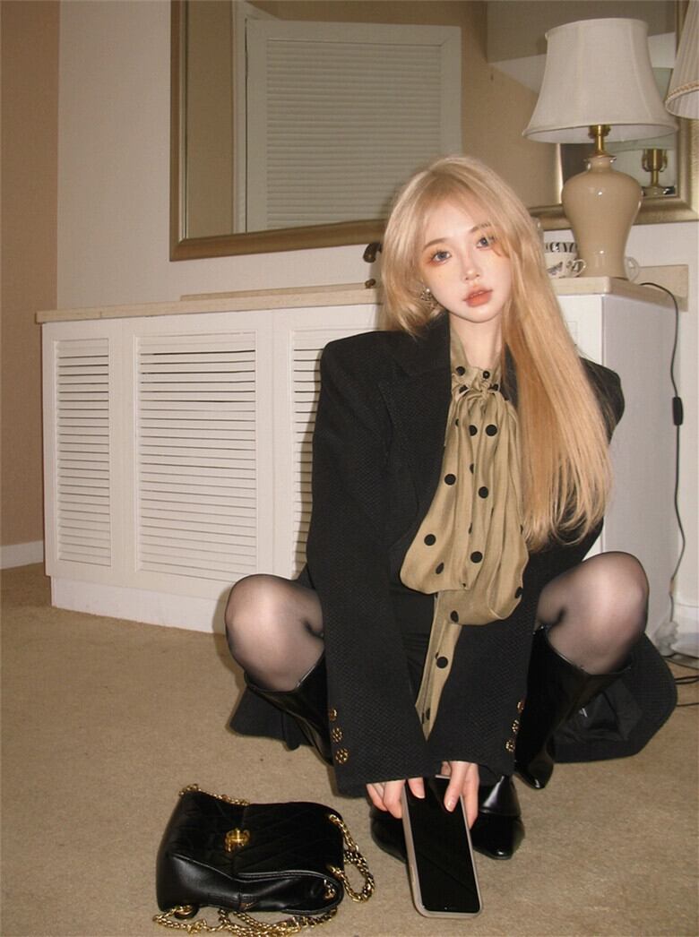 色:水玉シャツ,レギュラーブラックジャケット,キルティングの黒いジャケット