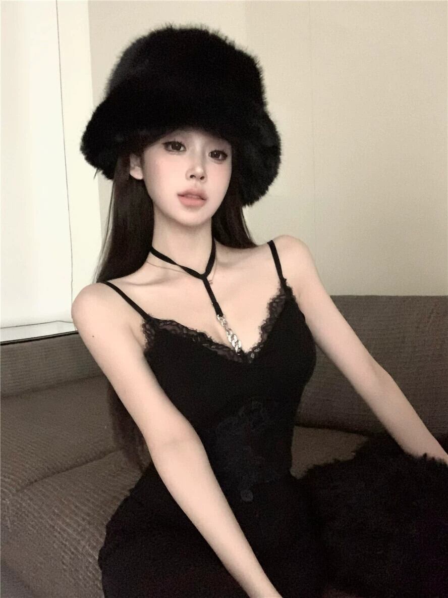 純粋な欲望のセクシーなスーツの女性の春 2024 新しい長袖 v ネックセーター痩身レースサスペンダーツーピースセットイン ロング スプリング 春物 Vネック 0921952481372299