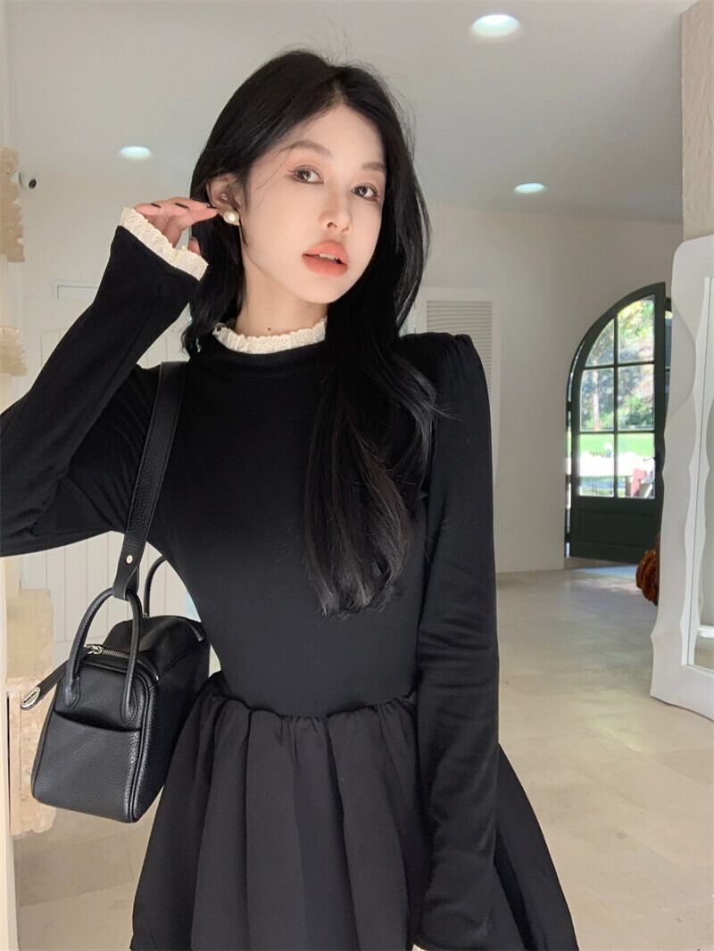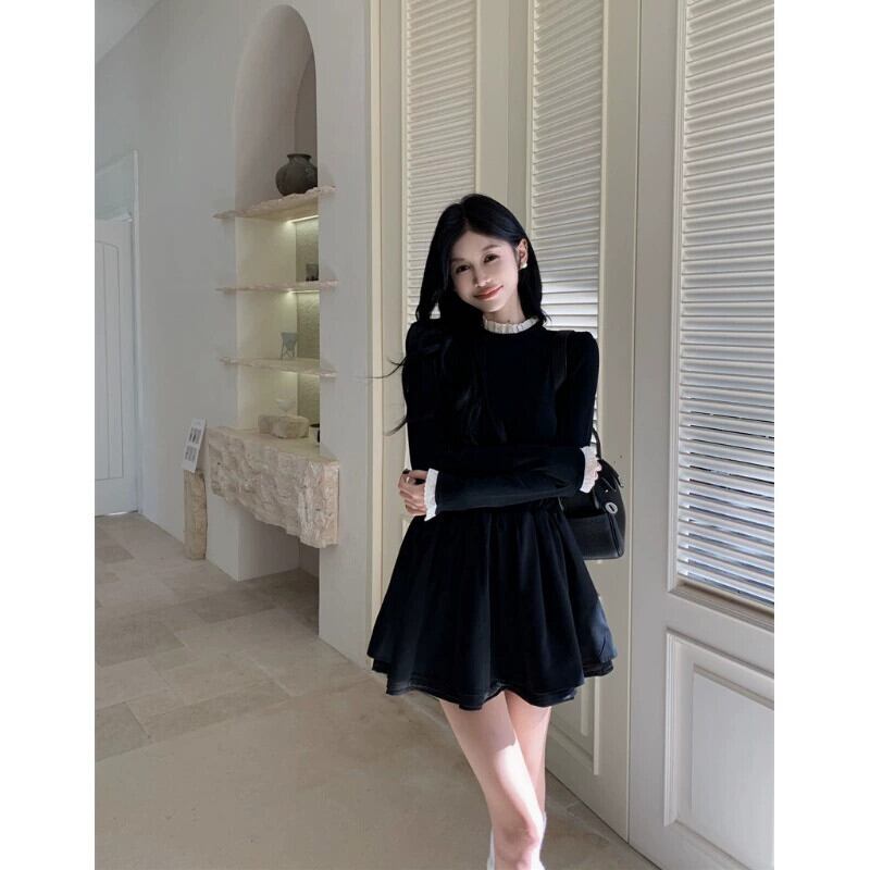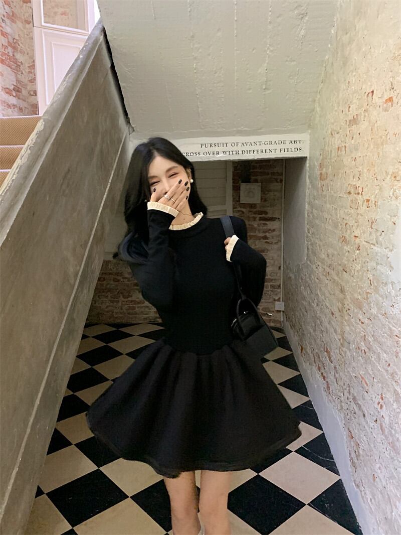 Xiaoxiangfeng Qianjin ドレス女性の春 2024 スタイルウエスト痩身底リトルブラックドレスふわふわショートスカート スプリング 春物 0921969659354936