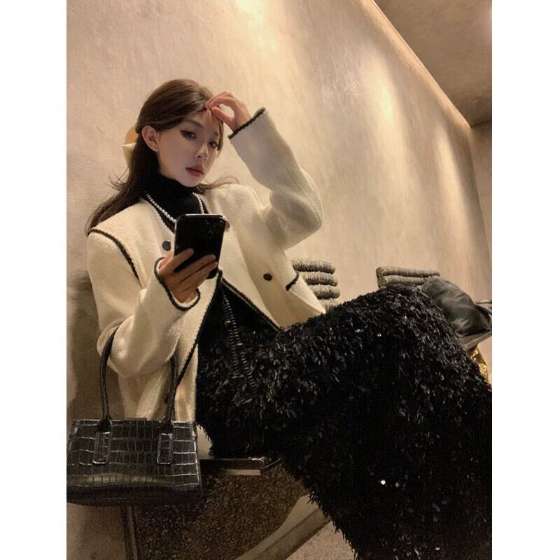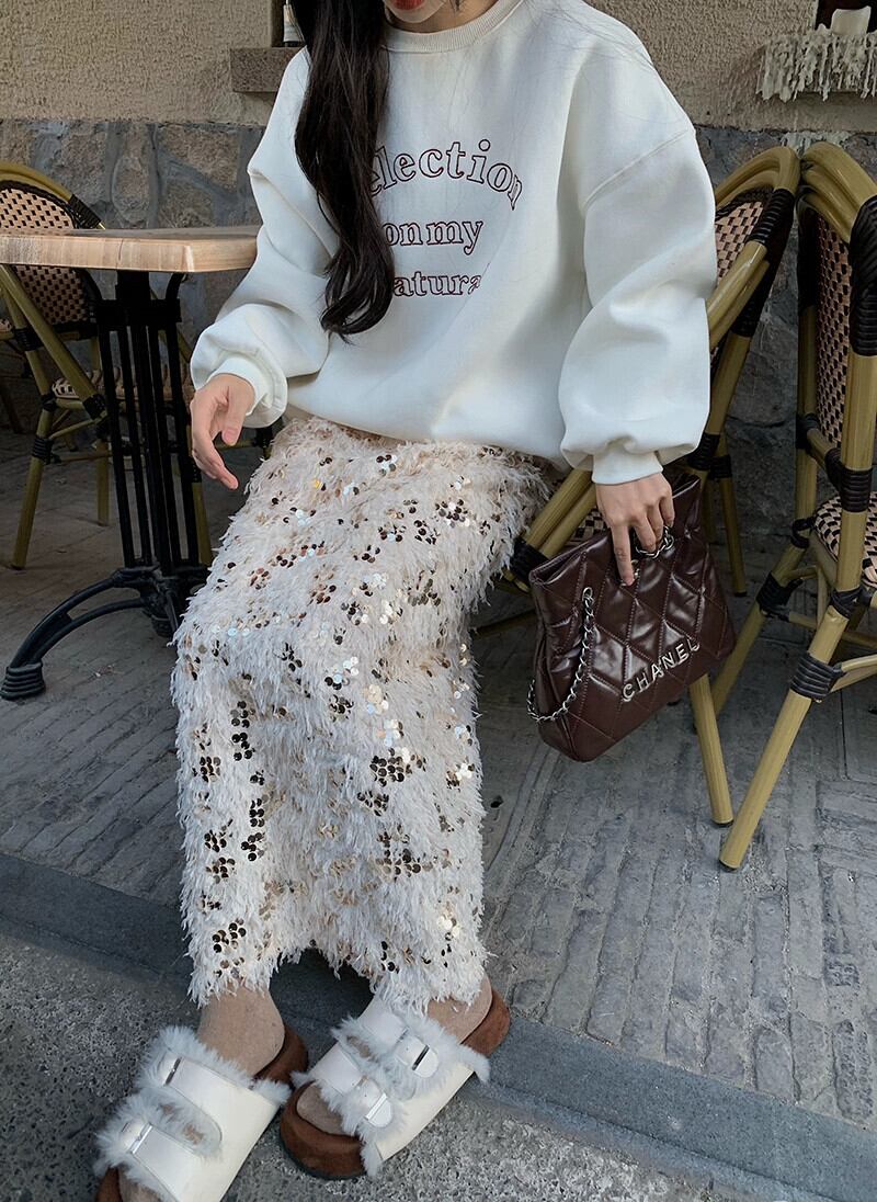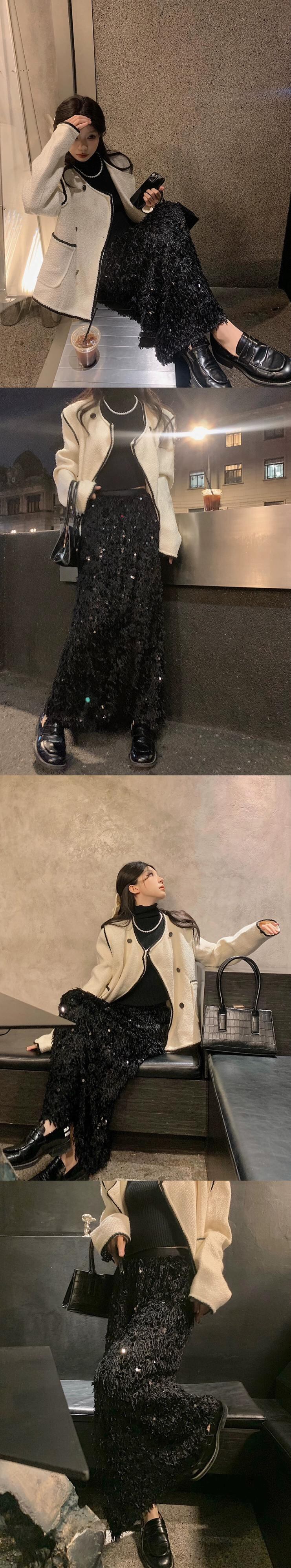 大気スパンコールハイウエストスリムスカート女性春 2024 新しいスタイルの気質ニットミッドレングス A ラインスカート スプリング 春物 Aライン 0921951970954008