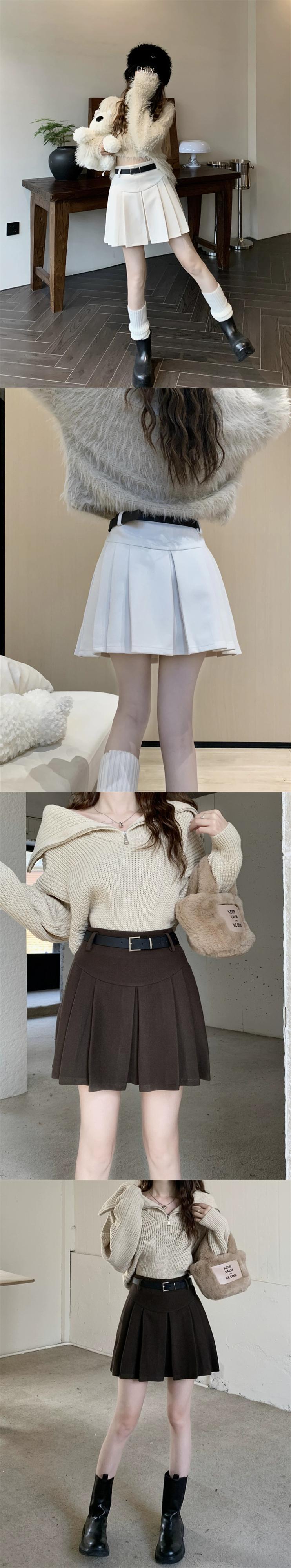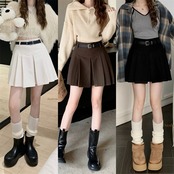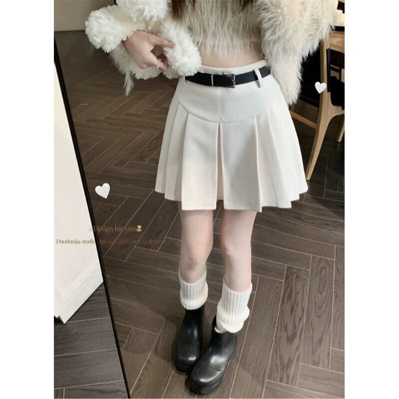 ソリッドカラーウールプリーツスカート女性の春の2024新しいハイウエストスカート露出防止痩身aラインスカートショートスカート スプリング 春物 0921959064709015