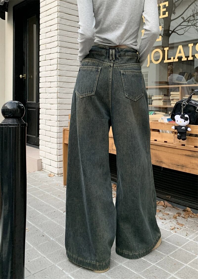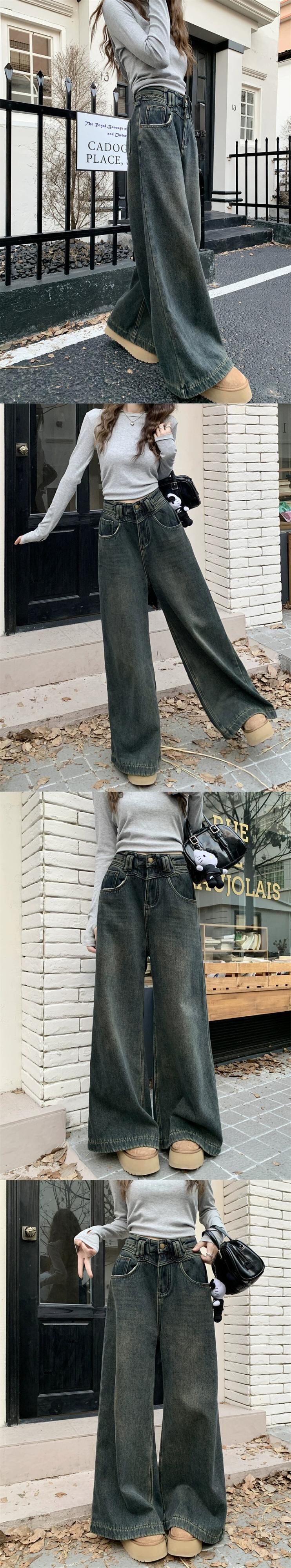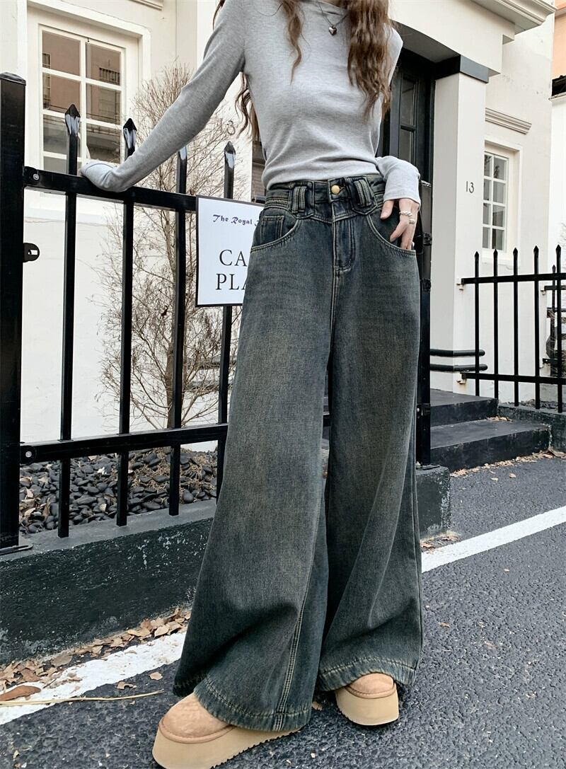 スタイルハイウエストスリムジーンズ女性 2024 年春の新しいカジュアルで多用途な厚みのあるルーズワイドレッグフロアレングスパンツ スプリング 春物 0921929726549084