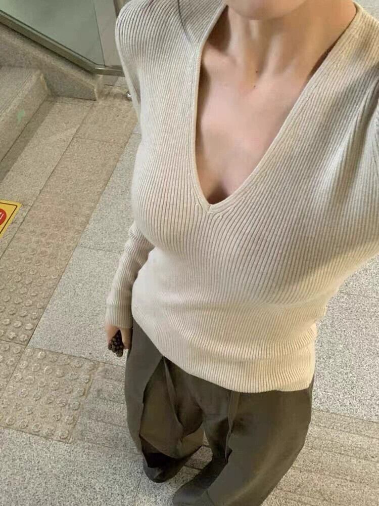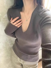 気質 V ネック長袖セーター女性の 2024 年春の新しいスタイルのインナースリムフィット多用途ボトリングトップ ロング スプリング 春物 Vネック 0921959974495361