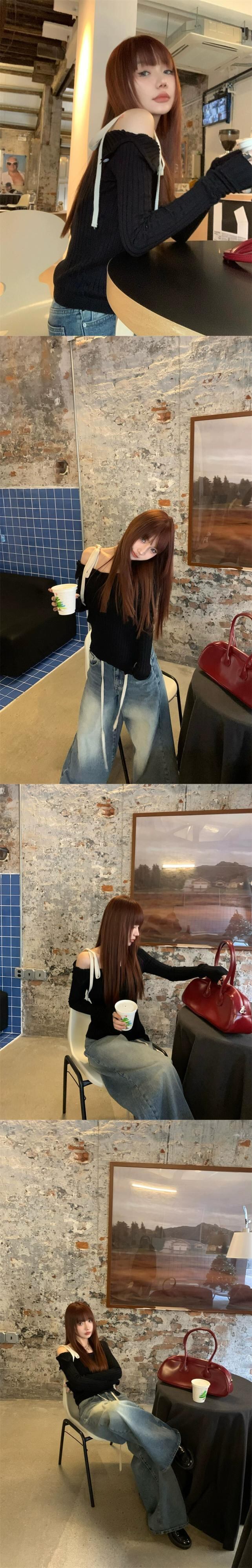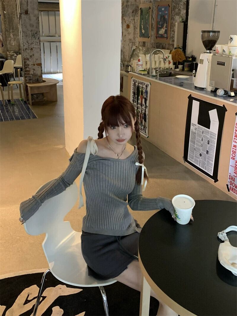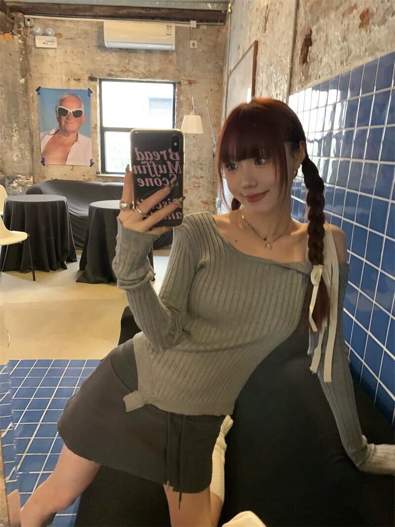 多彩なデザインのストラップレスオフショルダー長袖セーター女性 2024 年春の新しい甘くてスパイシーなスタイルのスリムフィットボトリングセーター ロング 大人ガーリー スウィート キュート カジュアル スプリング 春物 0921979542310894