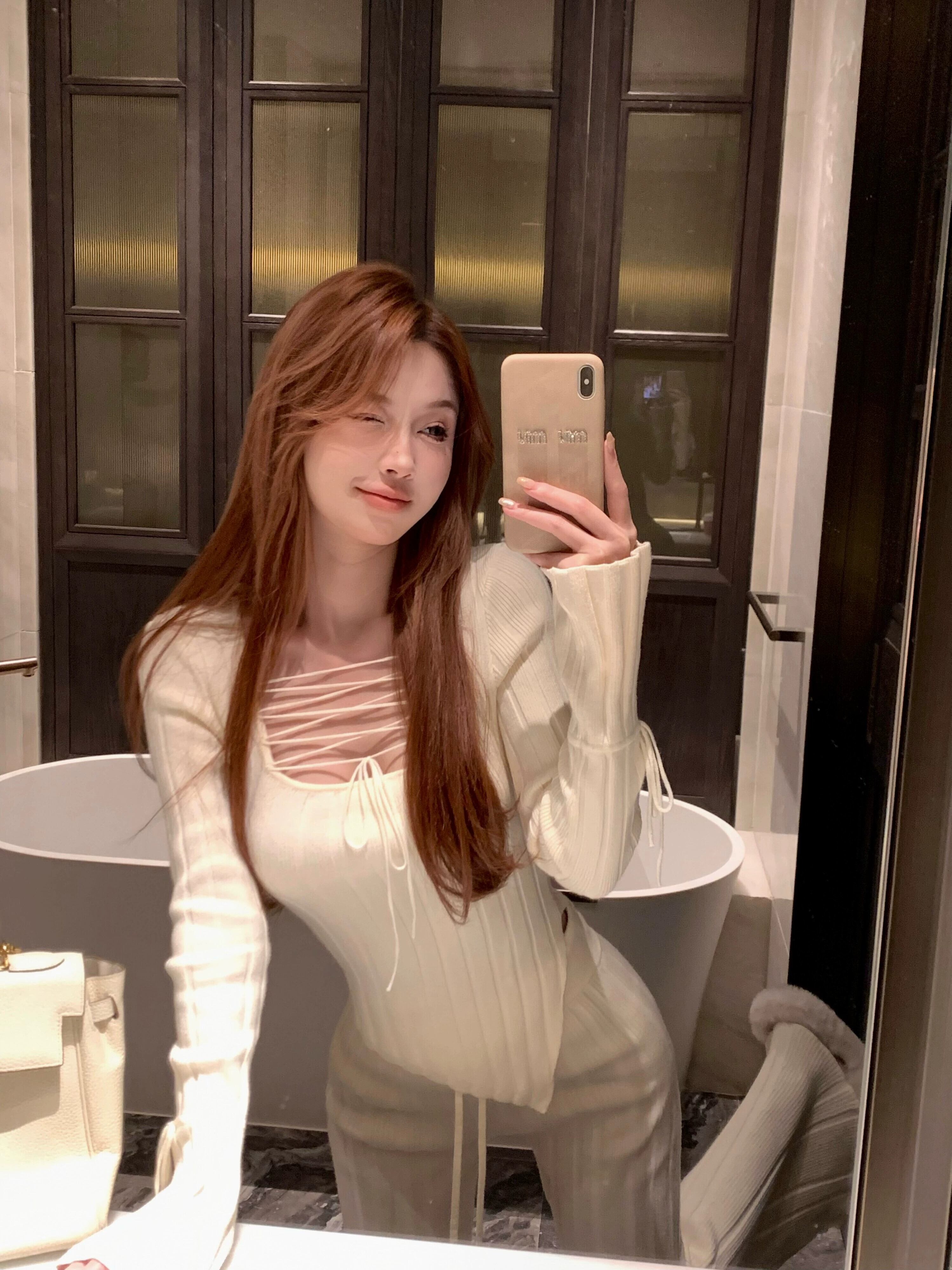 気質セクシーで怠惰なスタイルのスーツの女性の春 2024 新しい純粋な欲望ストラップセーターツーピースブーツカットズボンセット スプリング 春物 ピュア 0921945977290463