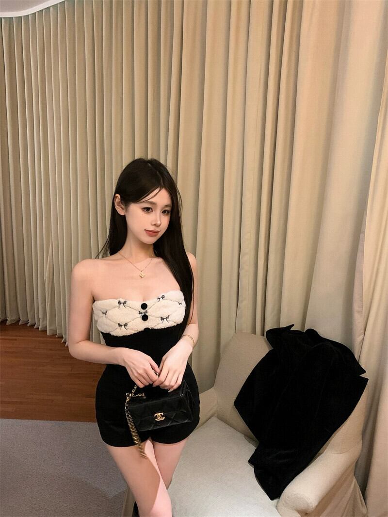 スプライスラムウールバックレスストラップレスベスト女性 2024 年春の新しいスリムフィットショートラップトップ スプリング 春物 0921982492218773