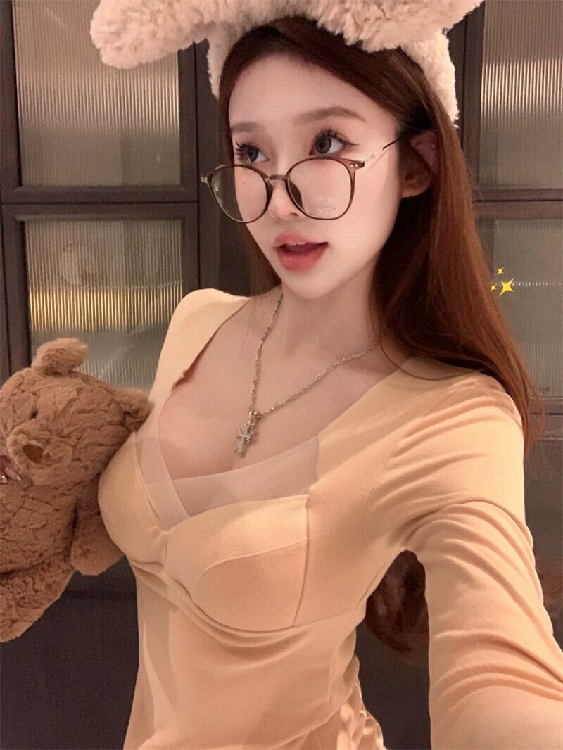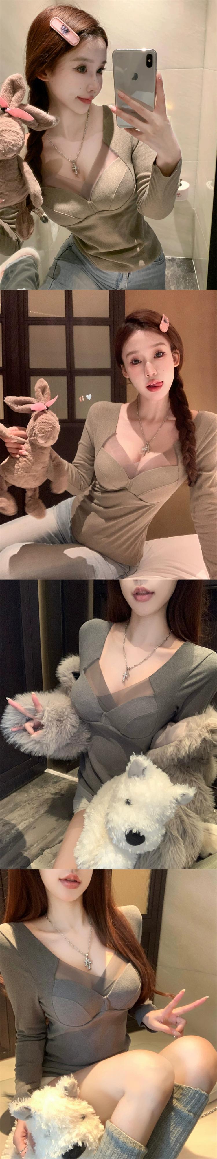 DeRong 暖かい厚みのある無地長袖 Tシャツの女性の 2024 年春の新しいボトムと胸パッドを着て多用途のトップを着用します。 ロング スプリング 春物 ソリッドカラー 0921952135212724