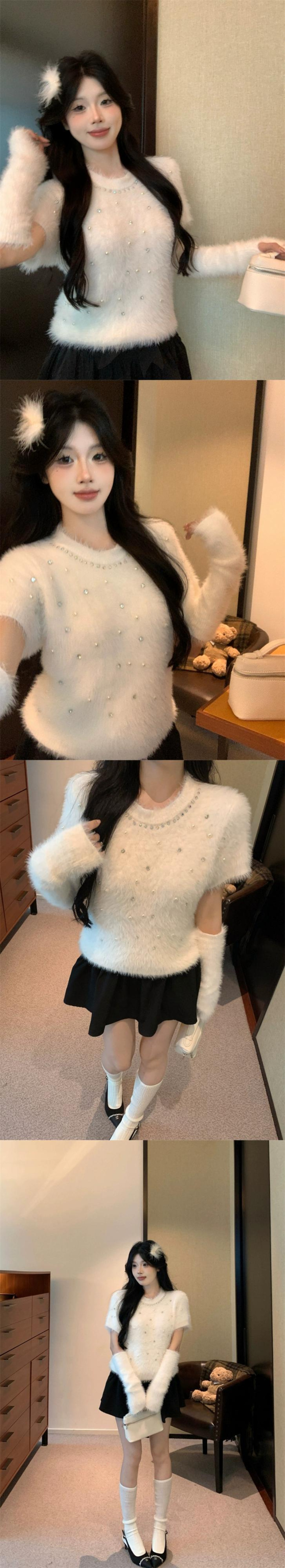 豪華なソフトワックスダイヤモンドスリーブセーターの女性の2024年春の新しい雰囲気のショートスリムフィットセーター スプリング 春物 0921977789718772