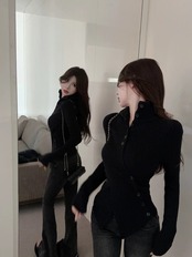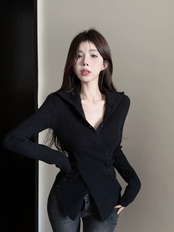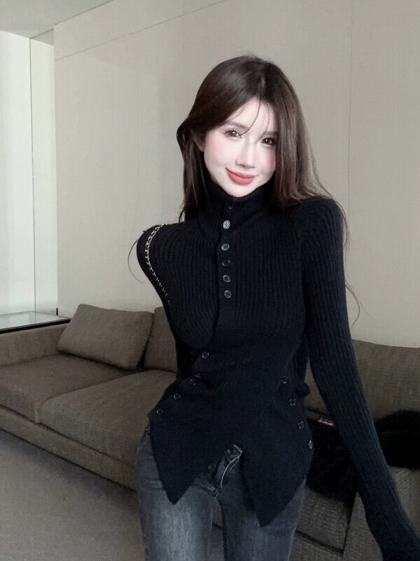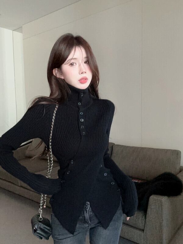 ED イレギュラークロスハイネックセーター女性 2024 年春の新しいスタイルスリムフィットセータートップ スプリング 春物 0921970260578619