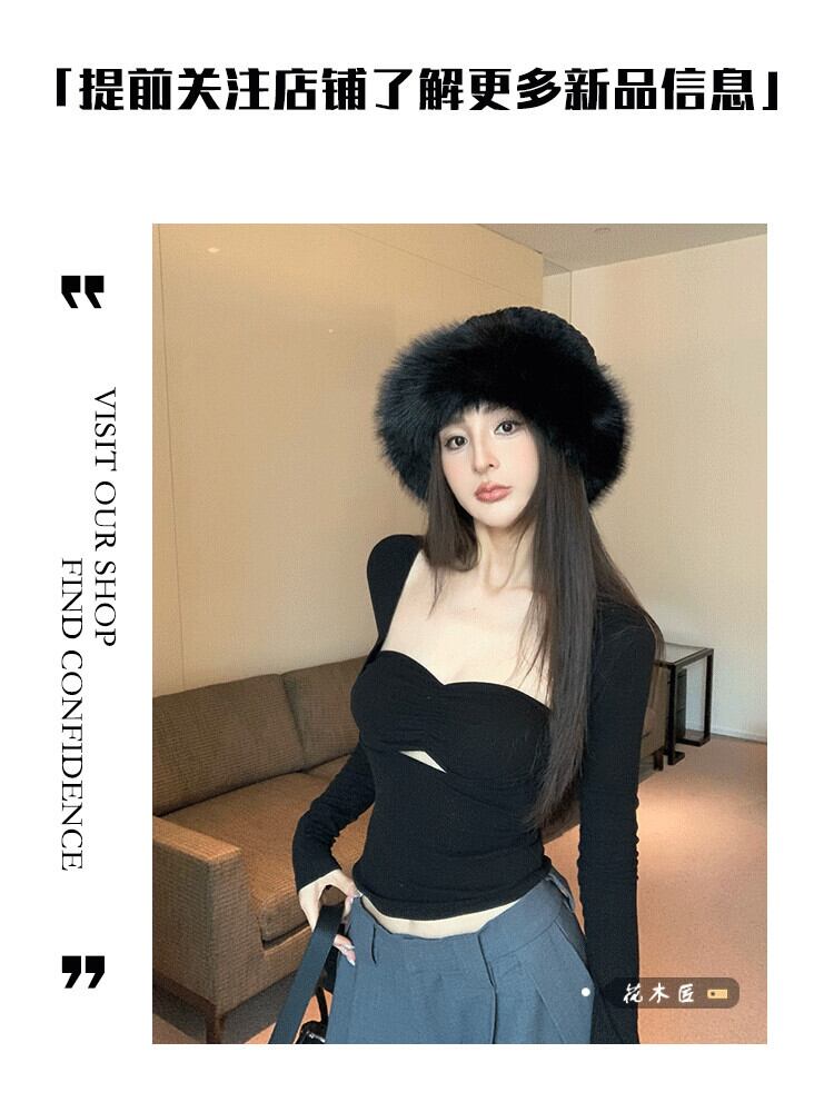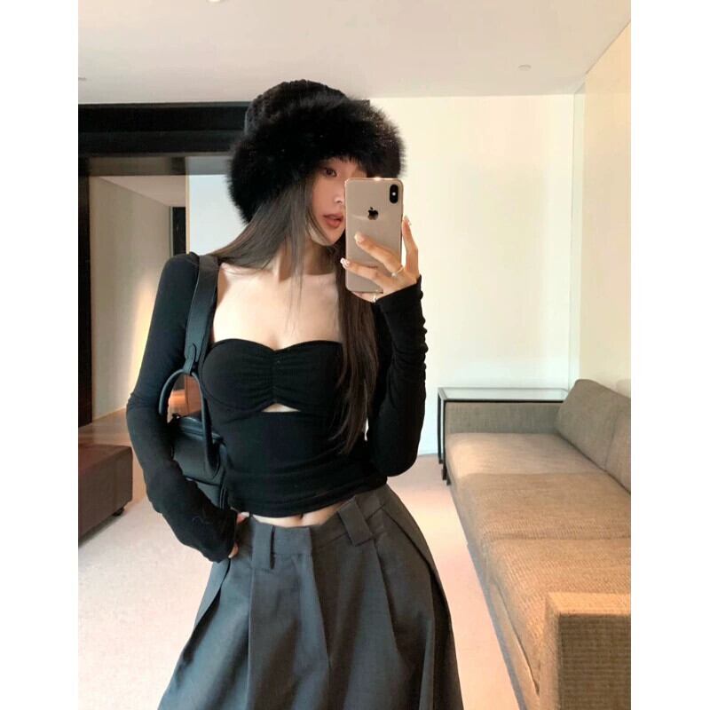 セクシーなトップスーツレディース2024春新作ショート長袖Tシャツ痩身チューブトップ2点セット ロング スプリング 春物 092196109599523