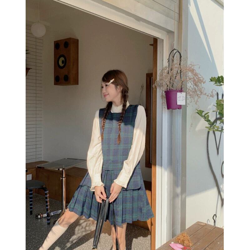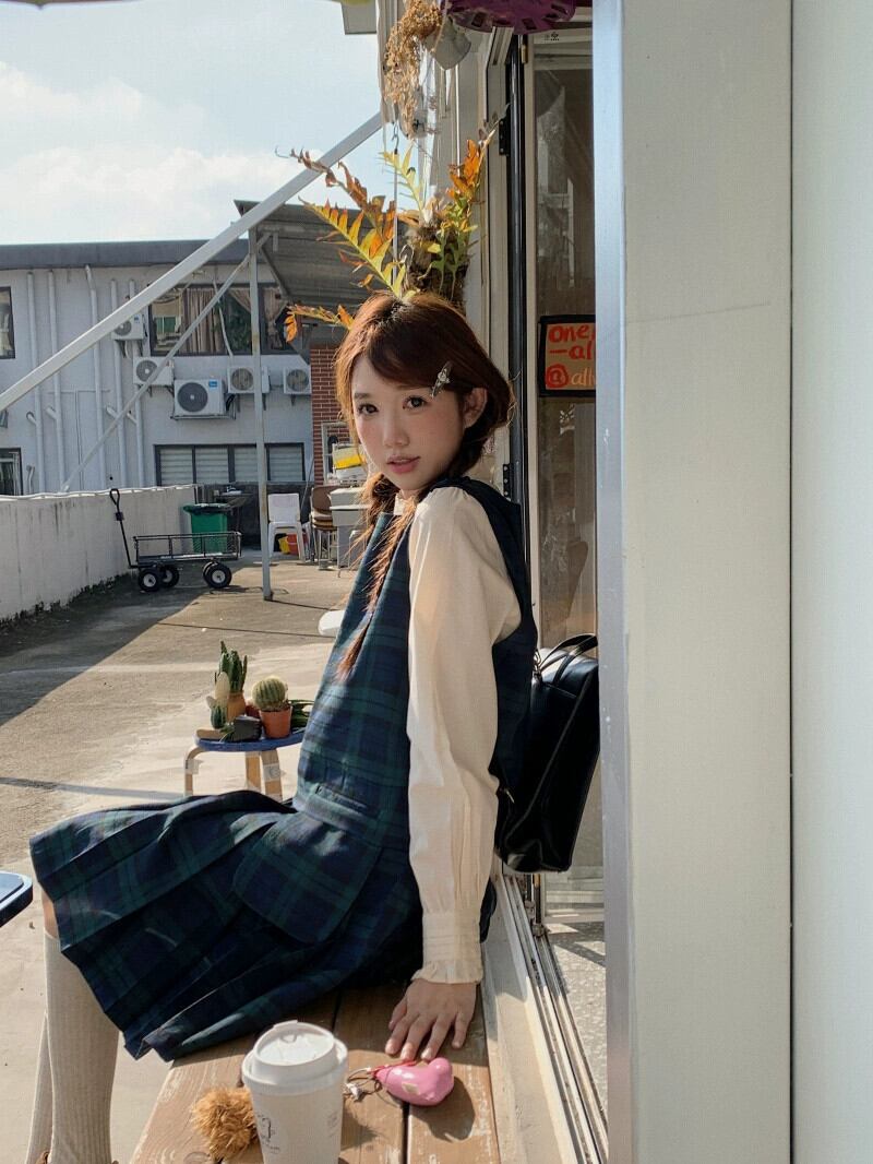 色:ミルクアプリコットシャツ,グリーンチェックスカート