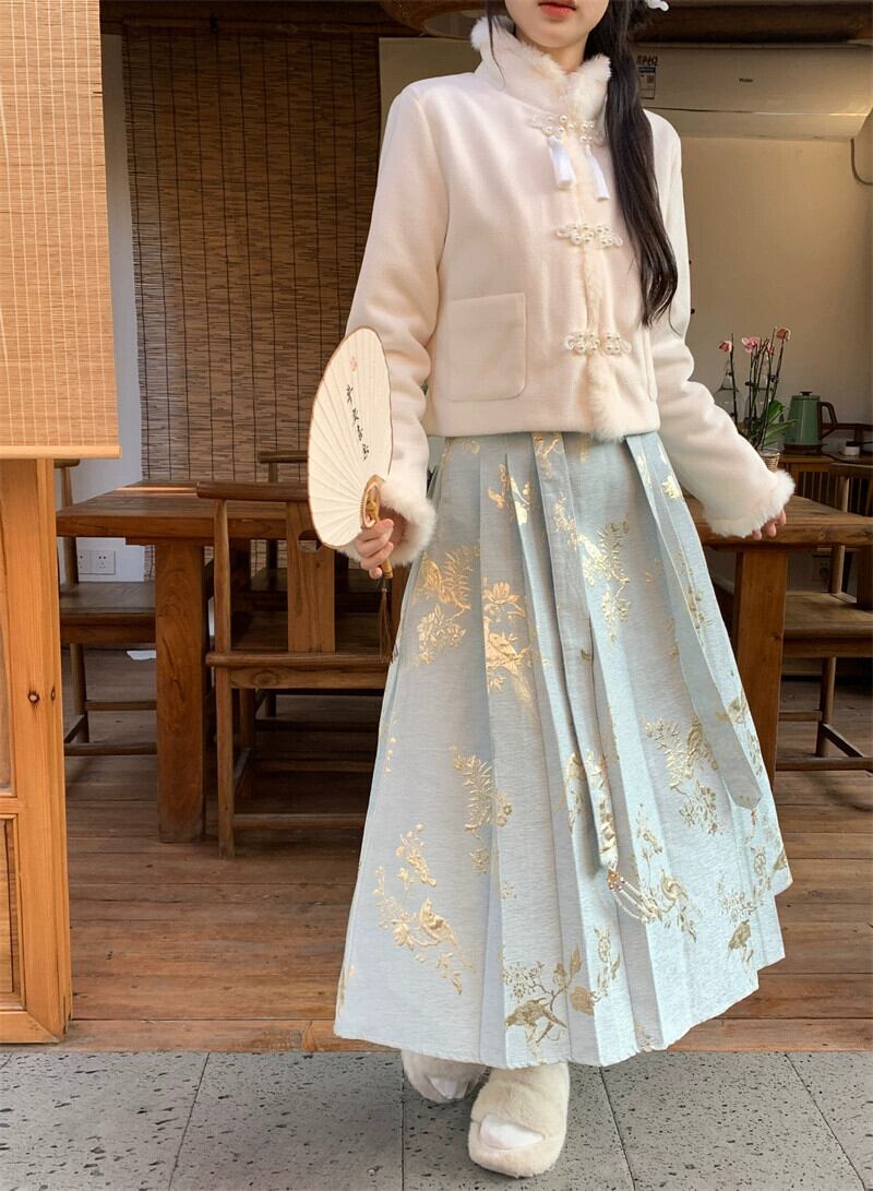 中国風の国民風のスーツの女性の 2024 年春の新パールプレートボタンウールのジャケットとスカートの 2 点セット スプリング 春物 真珠 0921954576859608