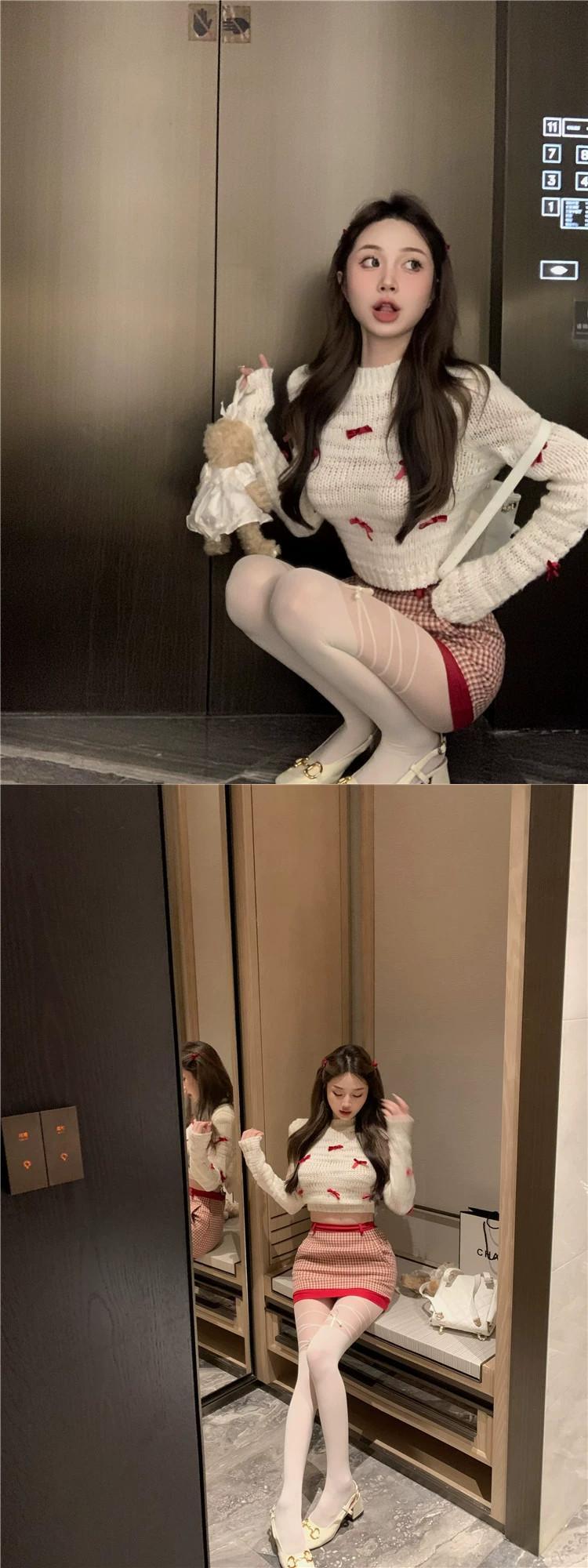 恋人ネクタイスタイルパッチワーク弓長袖セーター女性春ハーフタートルネックスリムインナートップとボトムシャツ ロング リボン 大人ガーリー スウィート キュート カジュアル スプリング 春物 0921945087702084