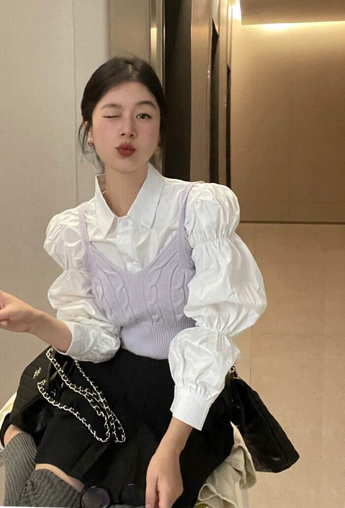 ファッションスーツの女性の春 2024 新しいツイストニットベスト白バブルプリーツシャツ 2 点セット ホワイト スプリング 春物 0921981705045281