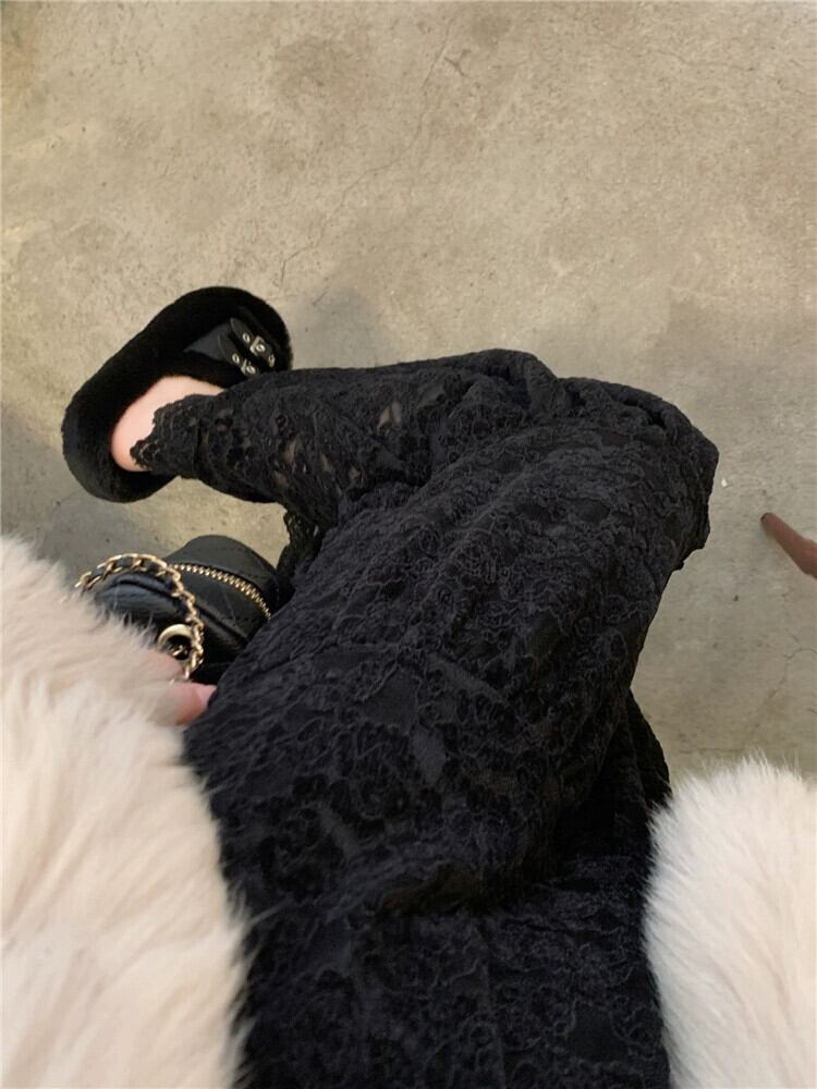 アプリコットの優しいスタイルのベルベットレーススカートの女性の春 2024 新しいスタイルのフレンチミッドレングススカートハイウエスト a ラインスカート スプリング 春物 Aライン 0921918839461239