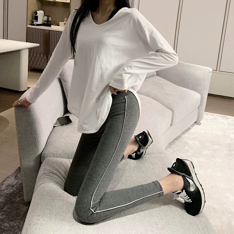 多用途ハイウエスト痩身ニットスポーツレギンス女性 2024 春の新しいタイトフィットカジュアル小足 9 点パンツ スプリング 春物 0921968100223592
