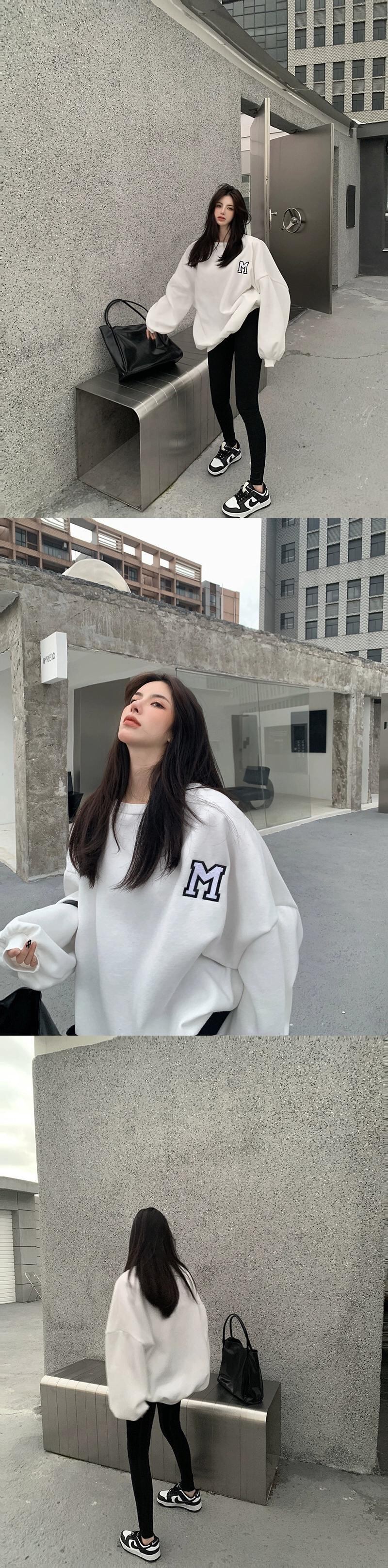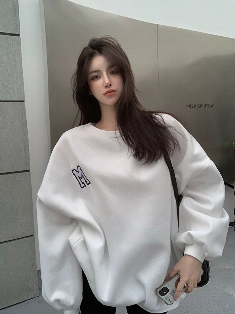 ベルベット肥厚ラウンドネックプルオーバー刺繍スウェットシャツ女性春 2024 新スタイルミッドレングスルーズスリム長袖トップ ロング レッド スプリング 春物 Oネック 0921948151322645
