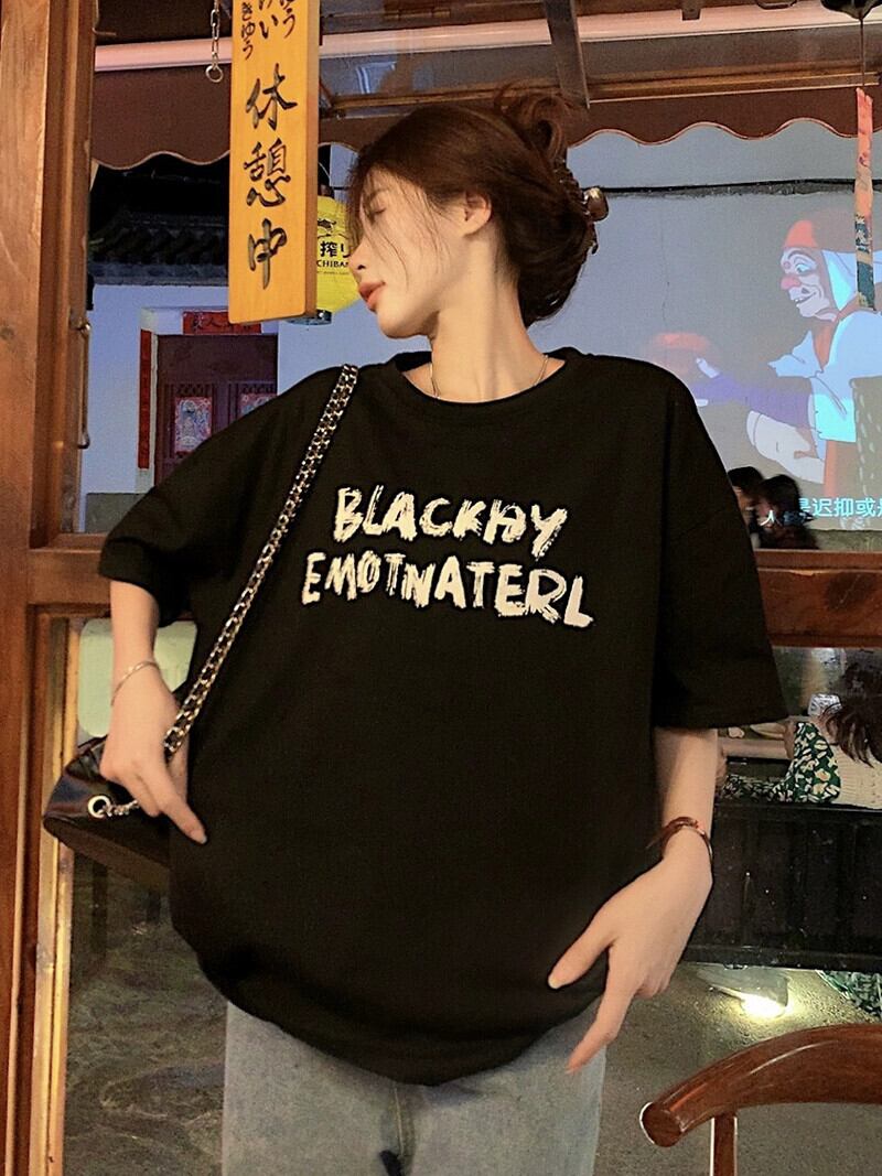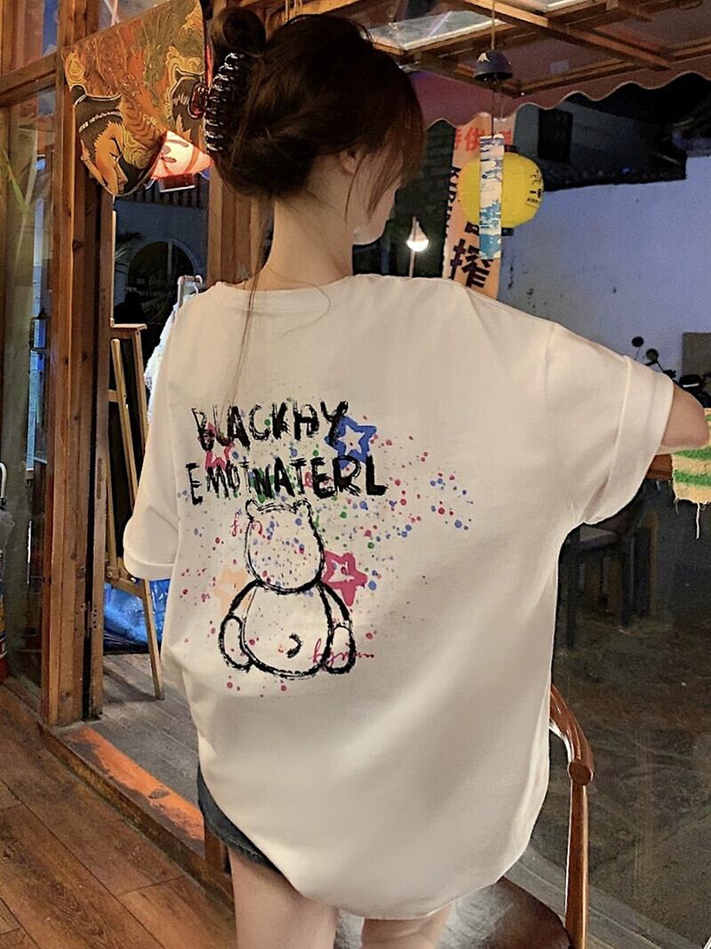 バージョンホワイトプリント半袖 Tシャツ女性の夏の 2024 新作イントレンディなルーズデザインスリム半袖トップ サマー 夏物 0921989129413
