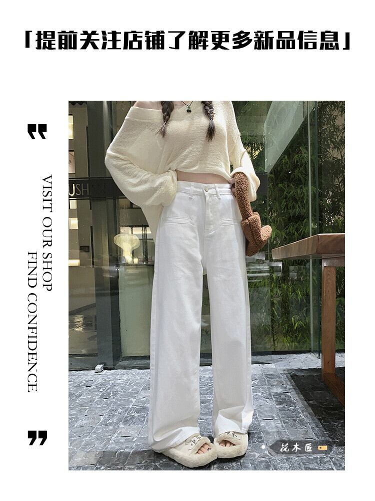 エドドラピーホワイトジーンズ女性春 2024 新しい多用途ハイウエストルーズスリミングワイドレッグフロアモップパンツ スプリング 春物 0921922167866538