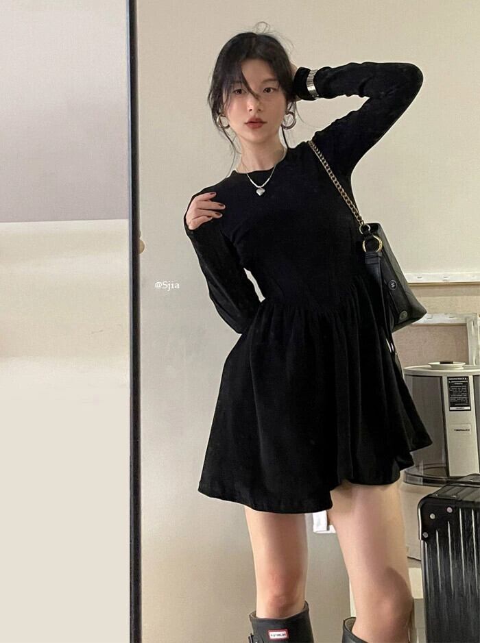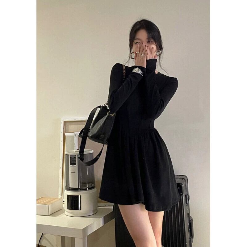 スタイルシックなヘリンボーンウエスト長袖ドレス女性の 2024 年春の新デザインスリムフィットボトリングスカート ロング スプリング 春物 0921998078859125