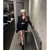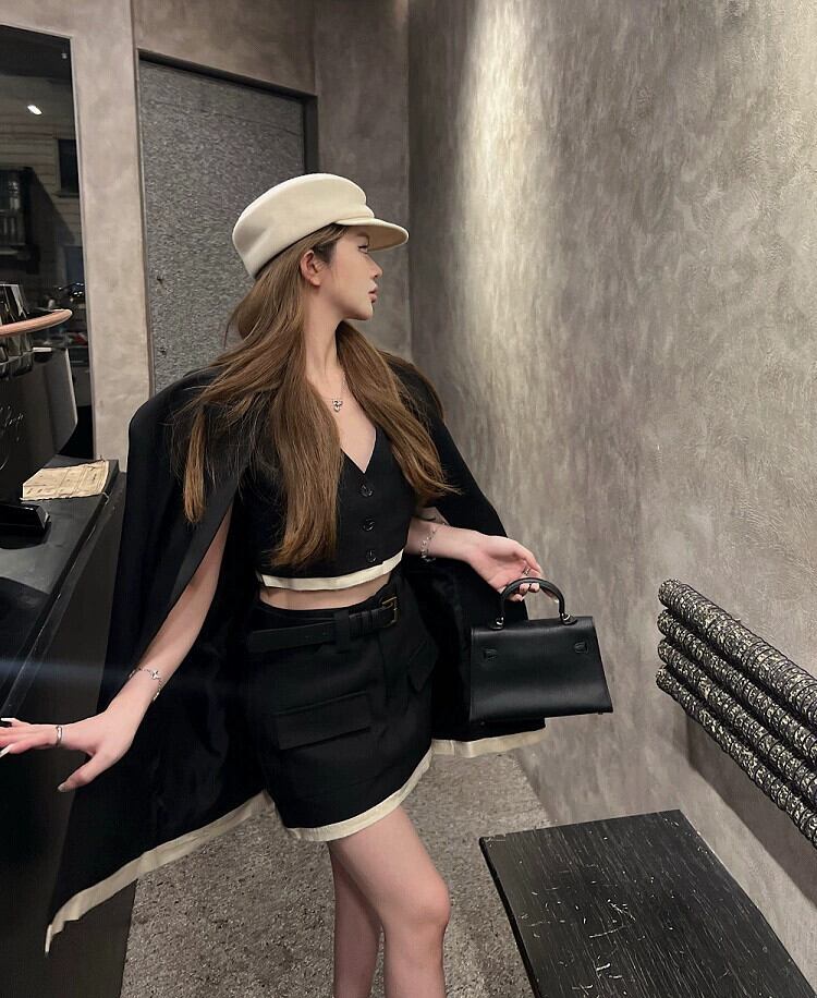 気質と高級黒のミドル丈スーツスーツ女性春ベストベストハイウエストスカート 3 点セット ブラック スプリング 春物 0921941071582910