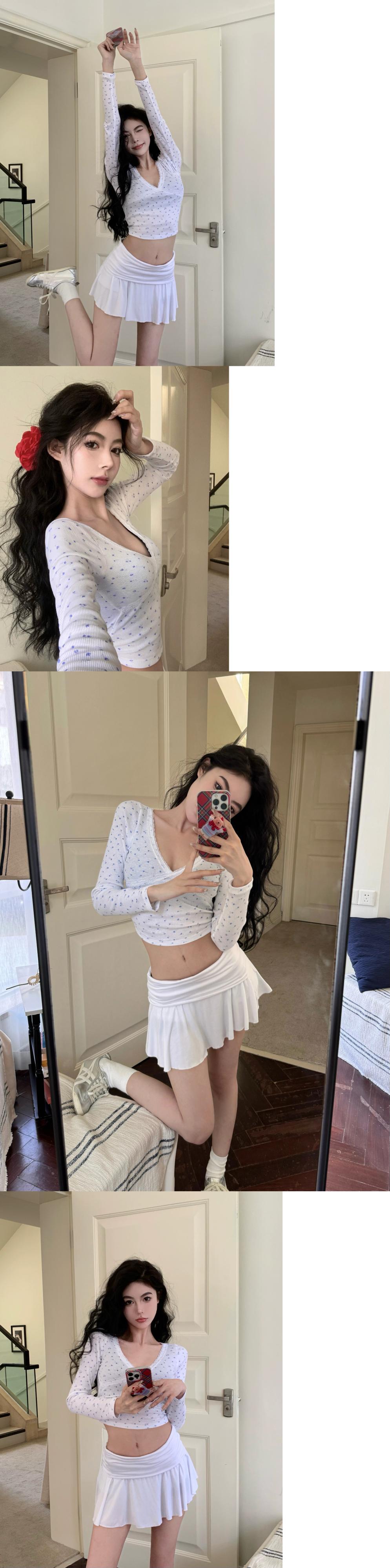 色:ブルーフローラルトップ,ホワイトフローラルトップ,黒スカート,白いスカート