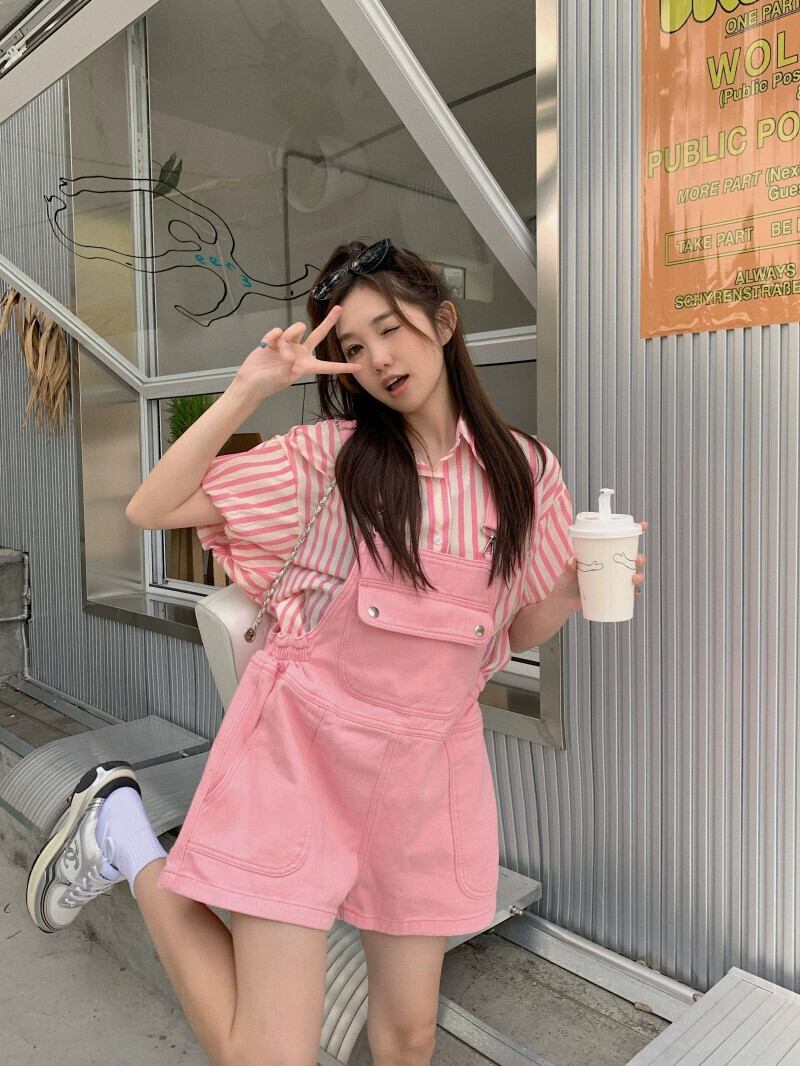 スタイル小さな年齢低減ファッションスーツ女性の夏 2024 新しいスタイルのストライプのシャツサスペンダーとジーンズの 2 点セット サマー 夏物 0921910996364245