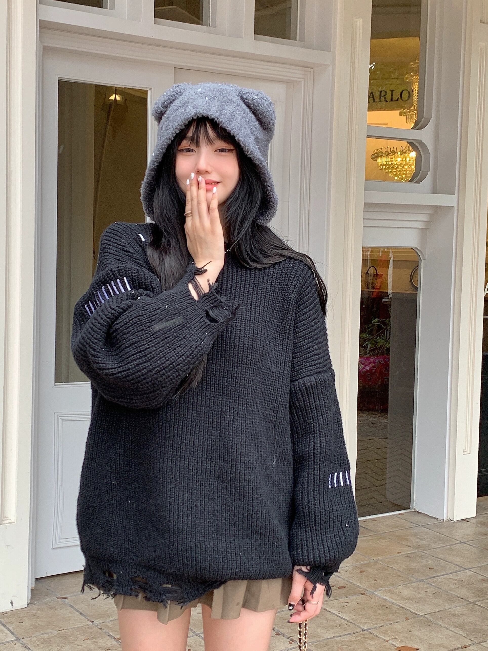 インスタイル対照的な色のプルオーバーセーター女性春 2024 新スタイル怠惰なルーズスリム長袖ラウンドネックセーター ロング スプリング 春物 Oネック 0921921532997048