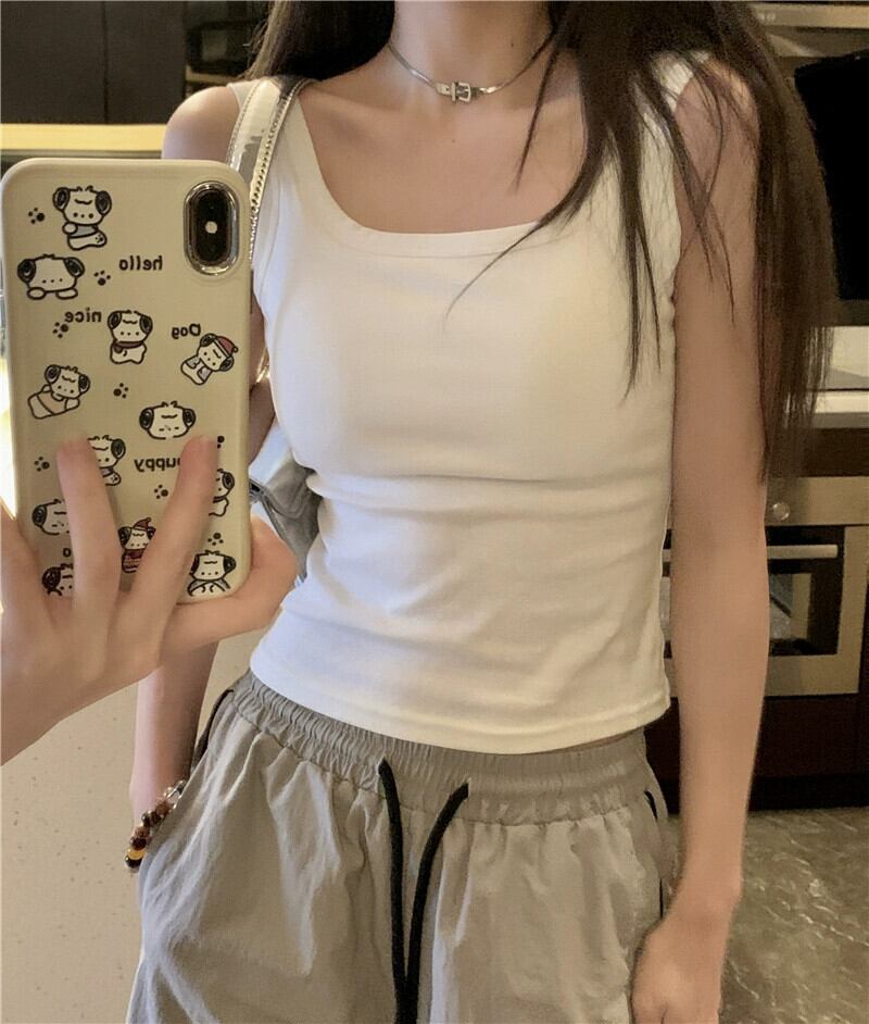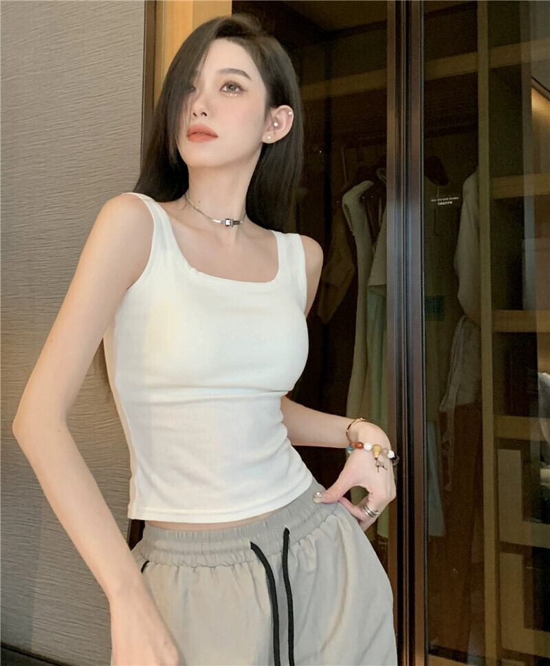 ホット底白キャミソール女性の夏純粋な欲望セクシーなインナーウェア美しいバックアウターショートトップ ホワイト サマー 夏物 ピュア 092193201658371