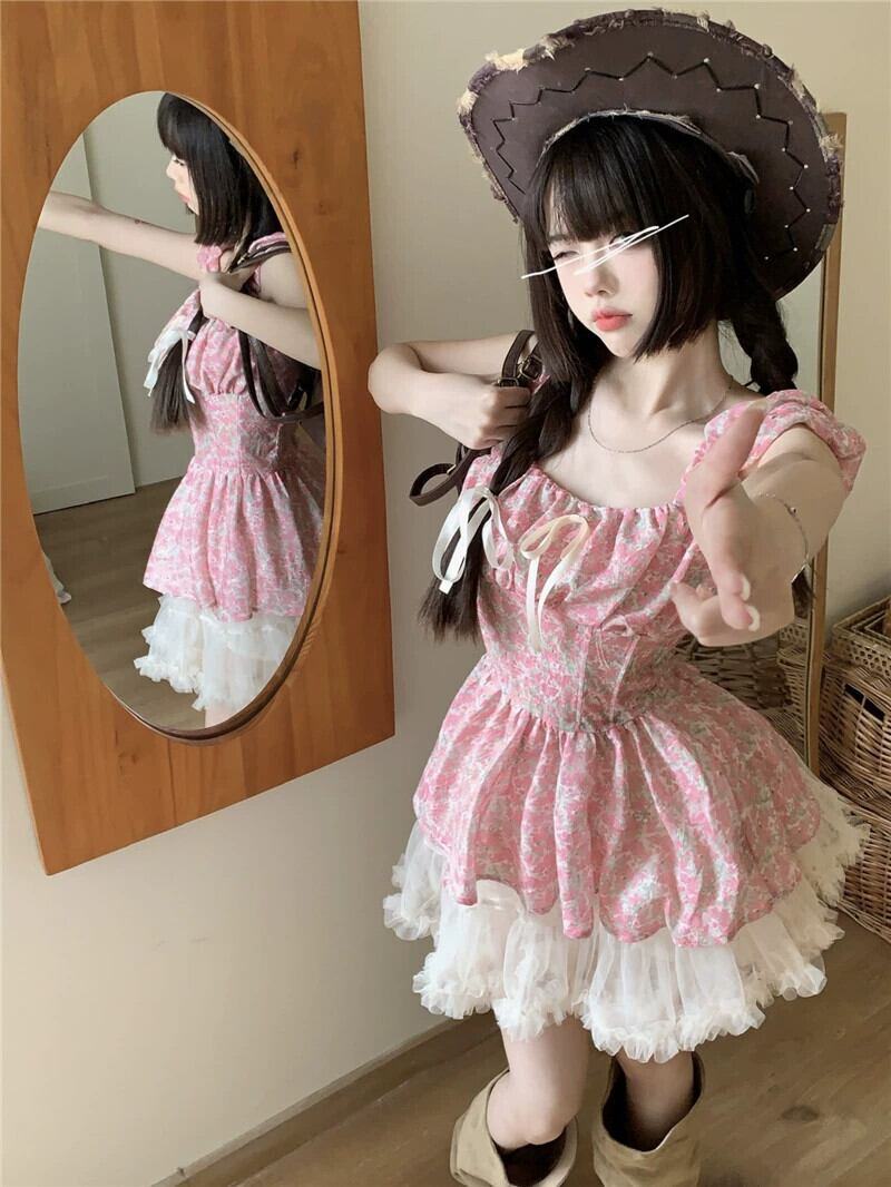 甘い老化を軽減する花柄サスペンダードレス女性の夏の 2024 新しい y スタイルウエスト痩身 A ラインスカート 大人ガーリー スウィート キュート カジュアル サマー 夏物 Aライン 0921983183093787