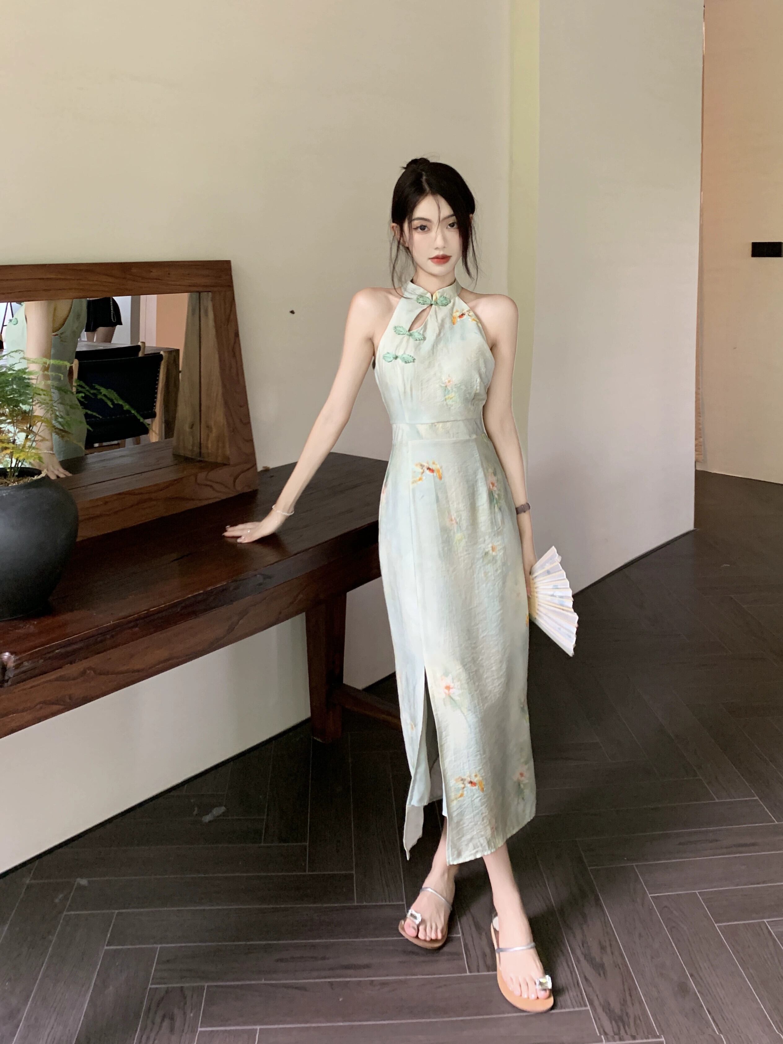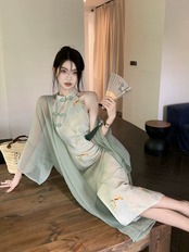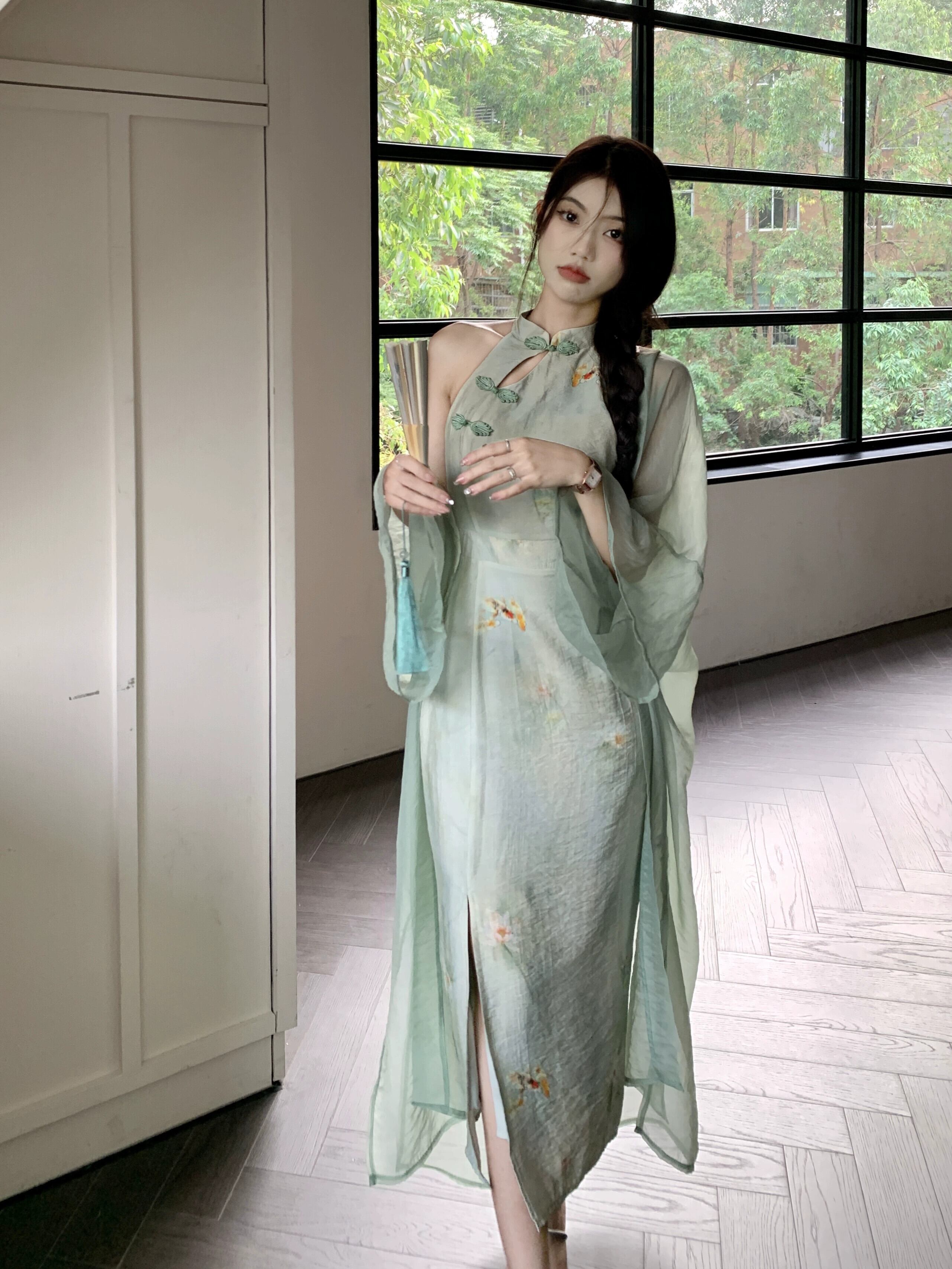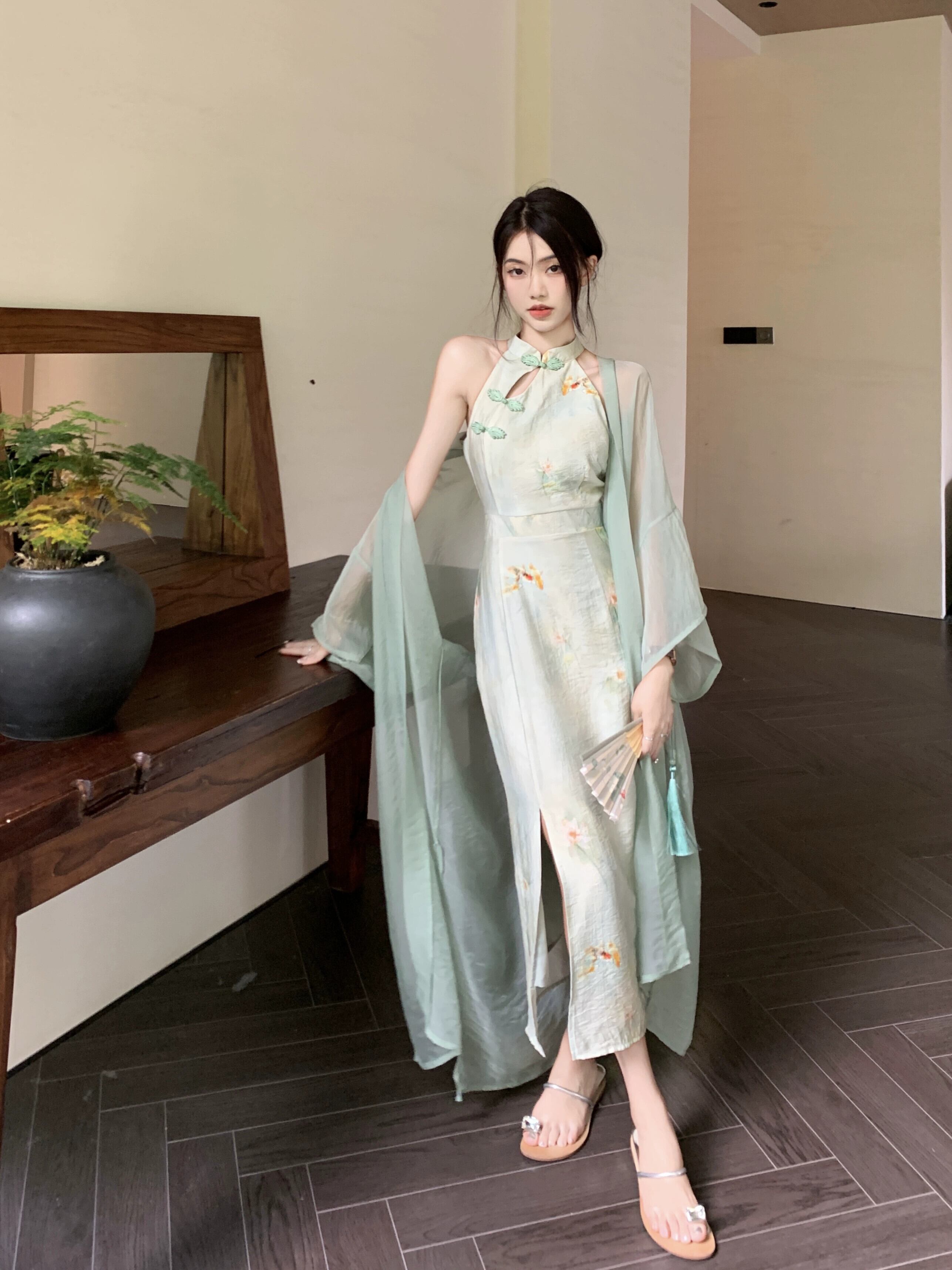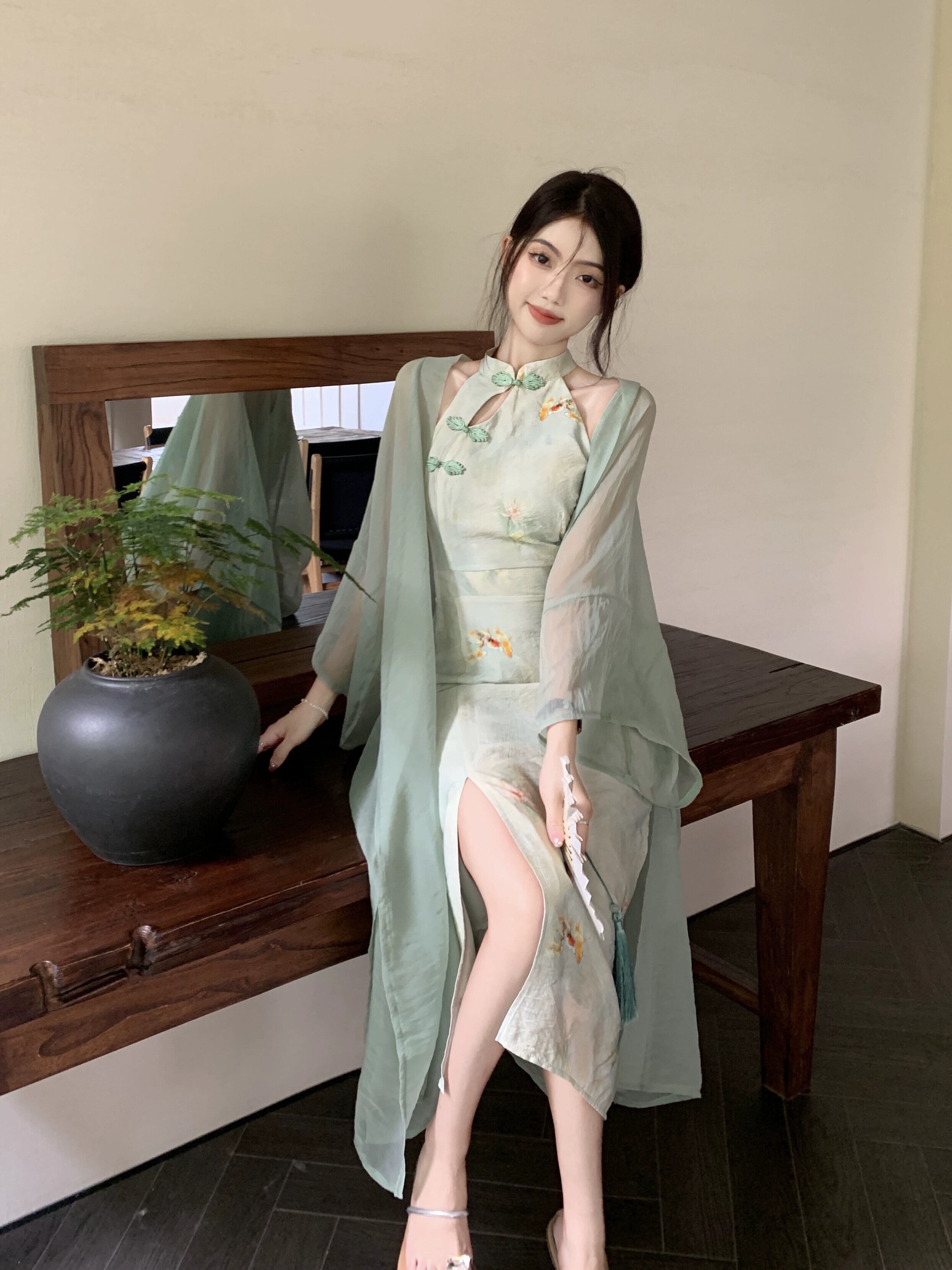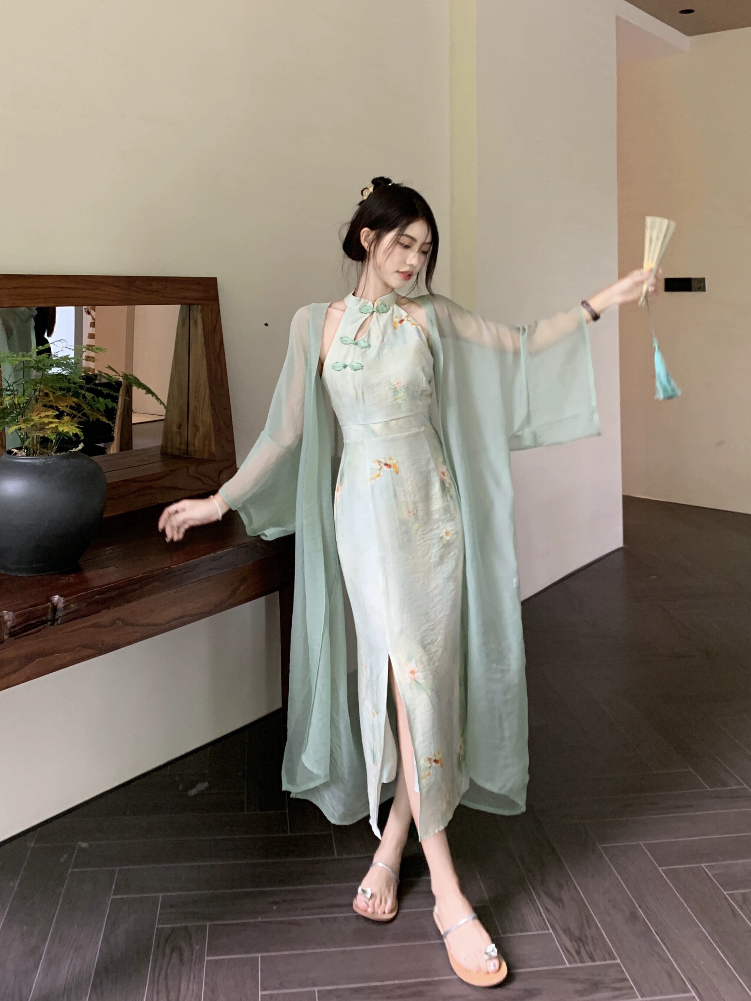 中国風のレトロな気質スーツ女性 2024 春の新スタンドアップカラープレートボタンチャイナスカート長袖カーディガン 2 点セット ロング スプリング 春物 0921955455286566