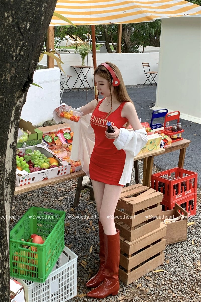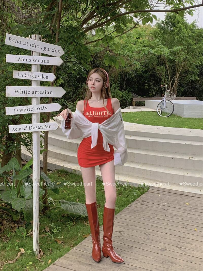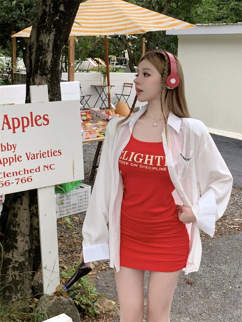 セクシーなホットガールレタープリントベストドレス女性の夏 2024 バックレスウエスト痩身ヒップスカート サマー 夏物 0921938321151341
