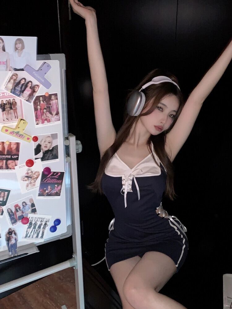 バレエスタイルのコントラストカラーストラップサスペンダードレス女性の夏の2024新しいスタイルのウエスト中空純粋な欲望ヒップカバーショートスカート サマー 夏物 ピュア 0921974328492371