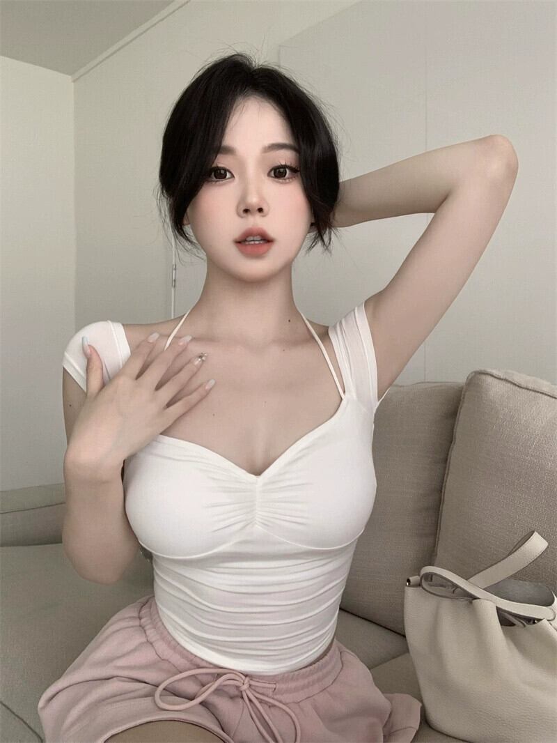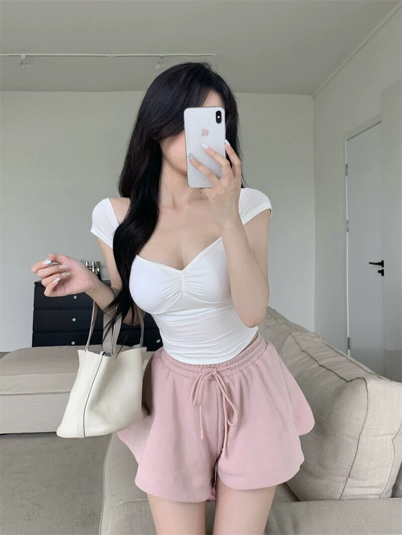 インターネットセレブの純粋な欲望ファッションスーツ女性の夏の 2024 新しい V ネックホルターネック Tシャツトップ多用途ショーツ 2 点セット サマー 夏物 ブルマー Vネック ピュア 092197935228755