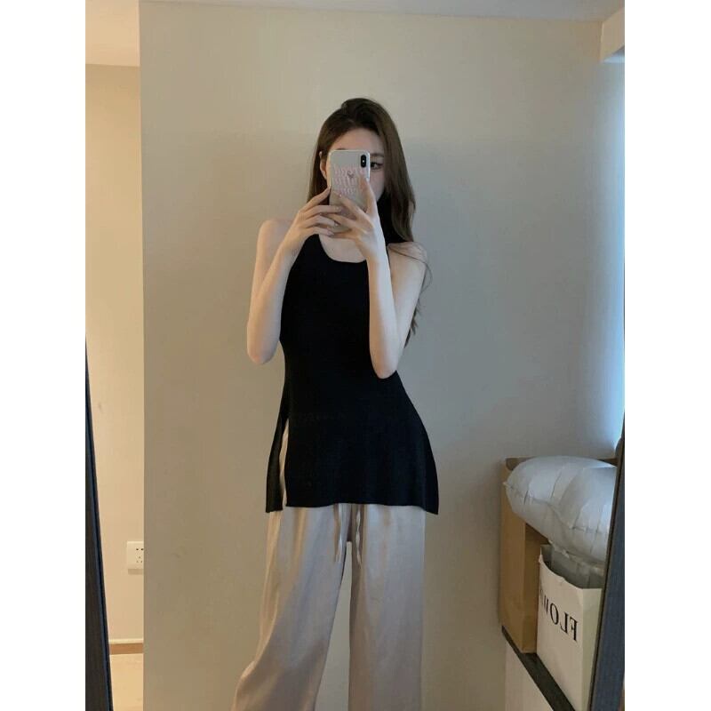 甘辛ニットキャミソールレディース2024年夏新作デザインスリットスリム着痩せノースリーブトップス 大人ガーリー スウィート キュート カジュアル サマー 夏物 0921958322003170