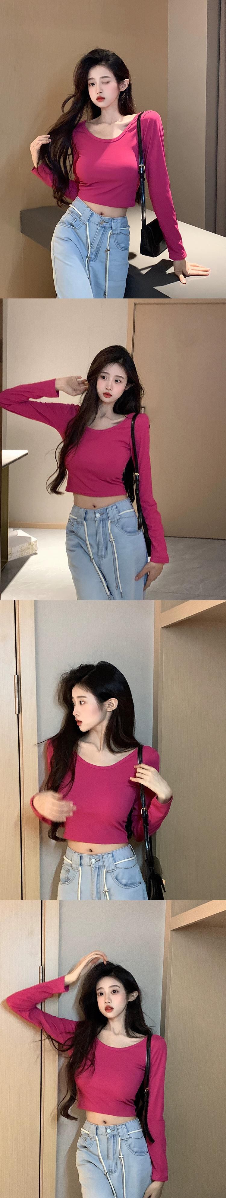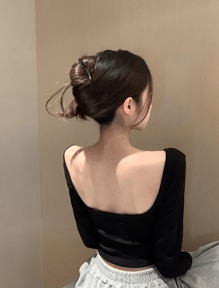 純粋な欲望スタイル背中の開いた長袖 Tシャツ女性 2024 春の新しいセクシーな気質ショートスリムフィットトップ ロング スプリング 春物 0921986085964599