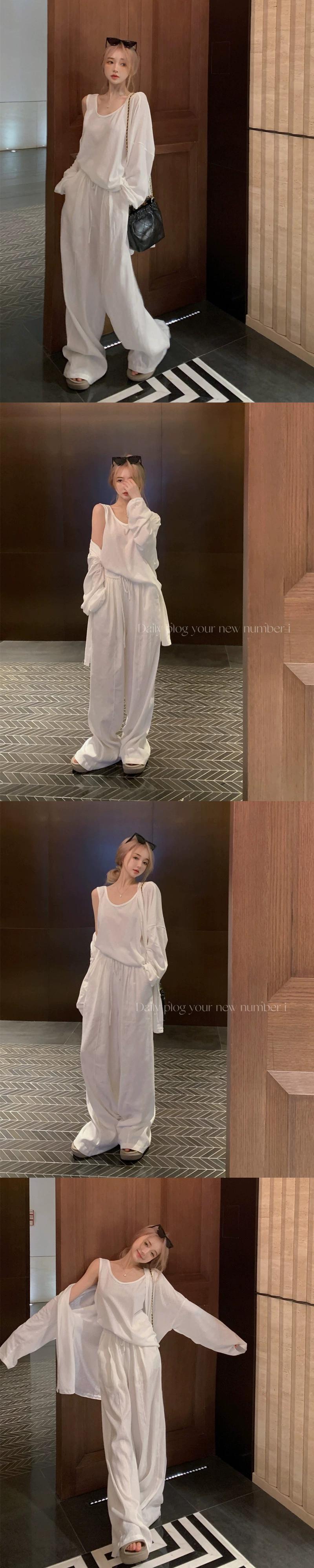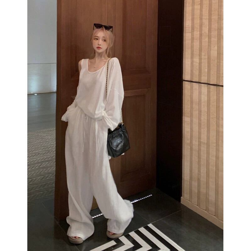 白インナーベスト、ゆったり日焼け止めカーディガントップ、レディース初秋レイジースタイルスーツ、ワイドカジュアルパンツ3点セット ホワイト オータム 秋物 092192923115675