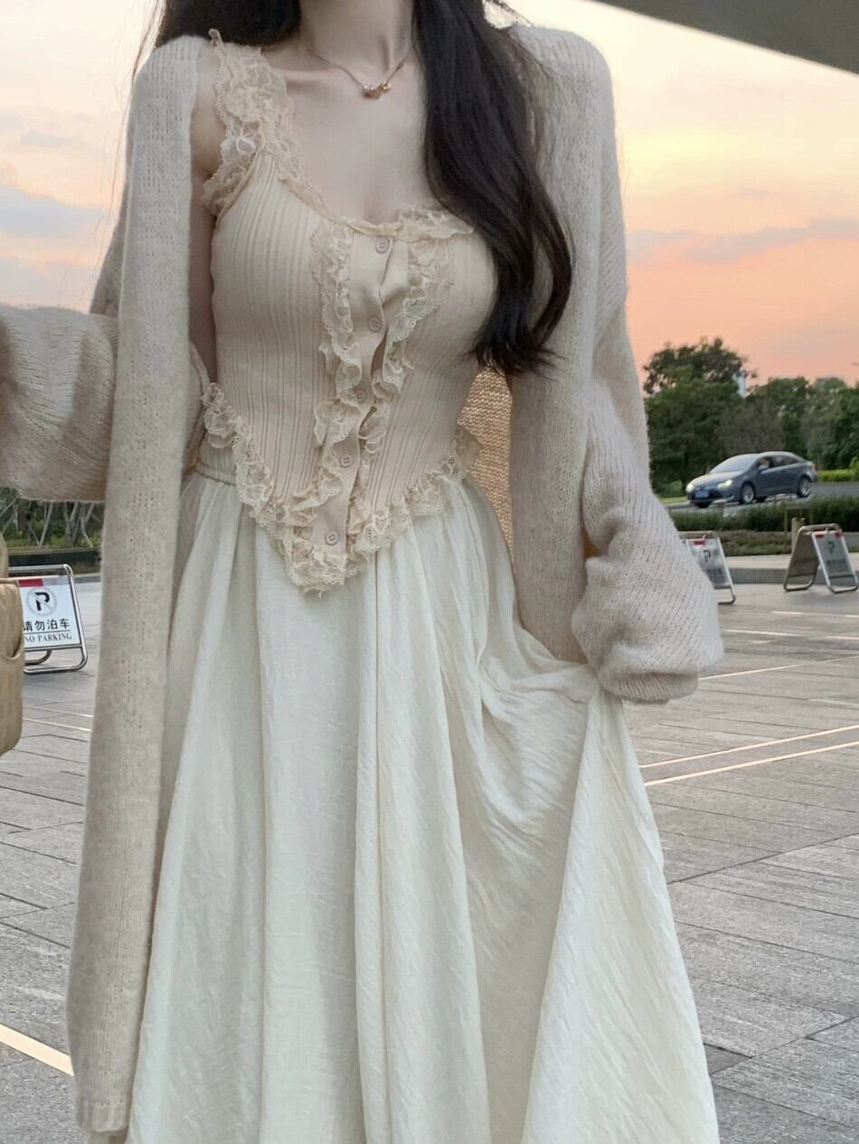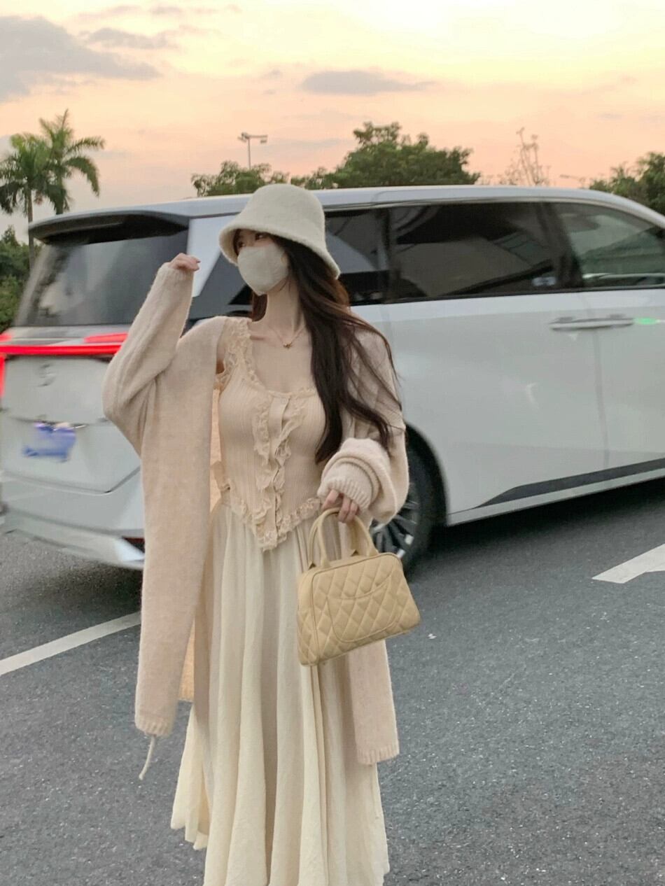 優しいスタイルのファッションスーツ女性 2024 春の新セータージャケットショートベスト痩身スカート 3 点セット スプリング 春物 0921995134432954