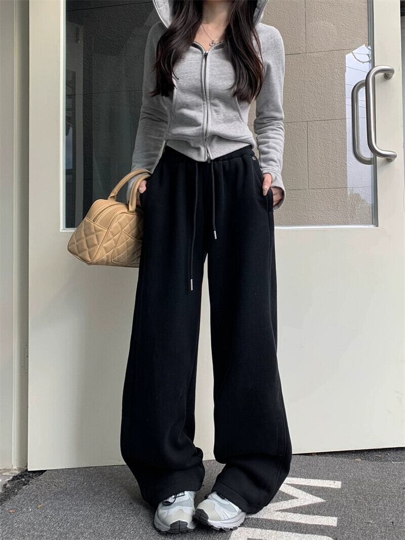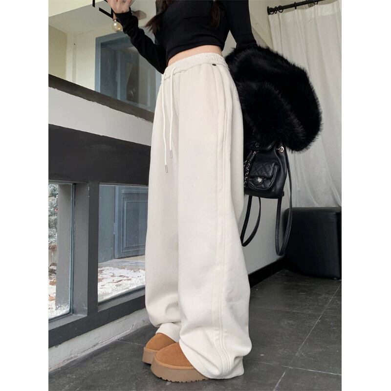 怠惰なスタイルベルベット巾着カジュアルパンツ女性春 2024 新しい弾性ハイウエストドレープルーズワイドレッグパンツズボン ハイウェスト エラスティック 伸縮 スプリング 春物 ワイドパンツ 0921944480554314