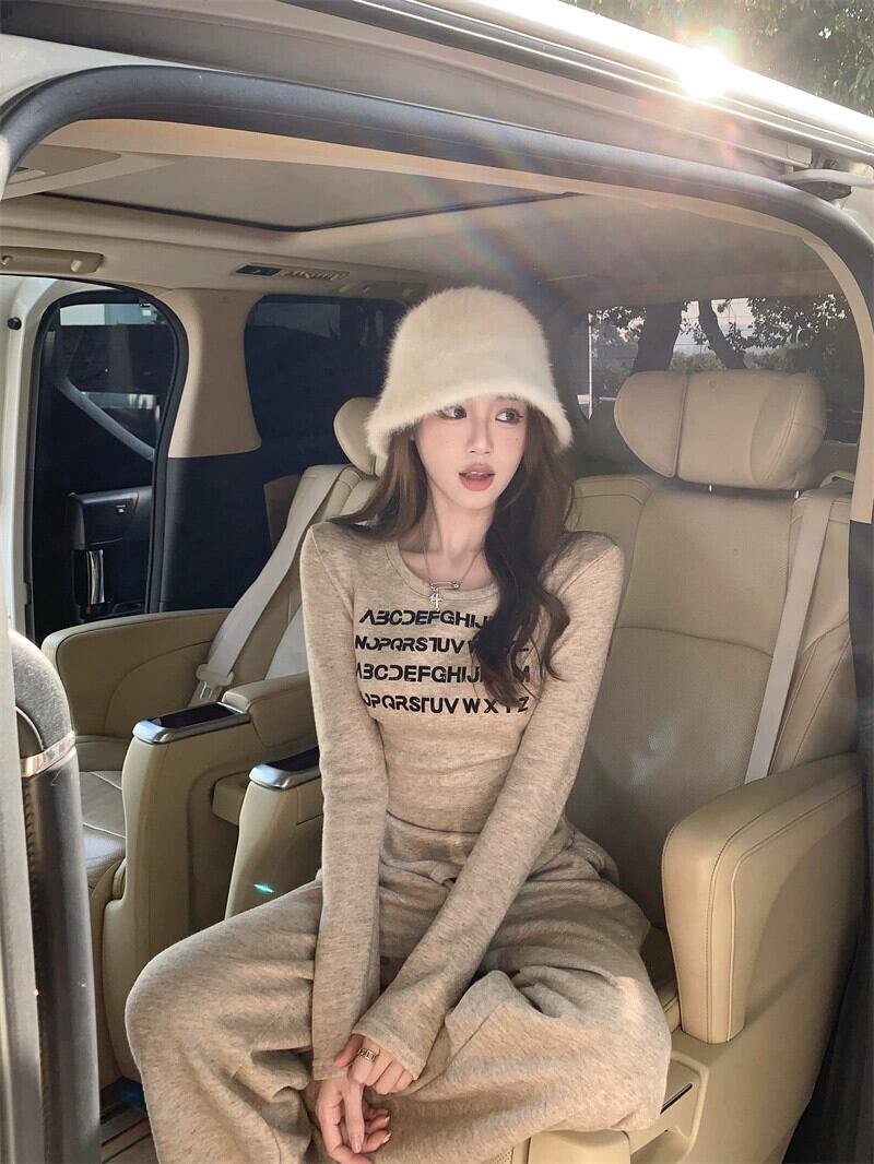 アメカジスーツの女性の冬 2024 新レタープリント肥厚トップワイドレッグパンツ 2 点セット カジュアル ウィンター 冬物 ワイドパンツ 0921962673438860