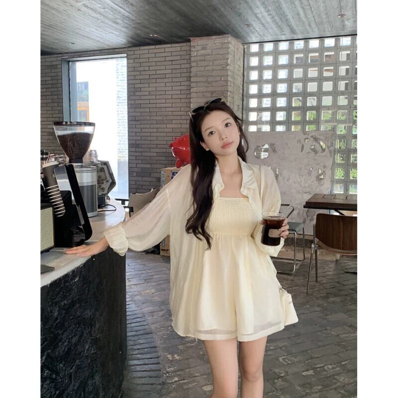 ニッチスーツレディース2024年夏新作長袖シャツトップサスペンダージャンプスーツツーピーストレンディセット ロング サマー 夏物 0921927696803183